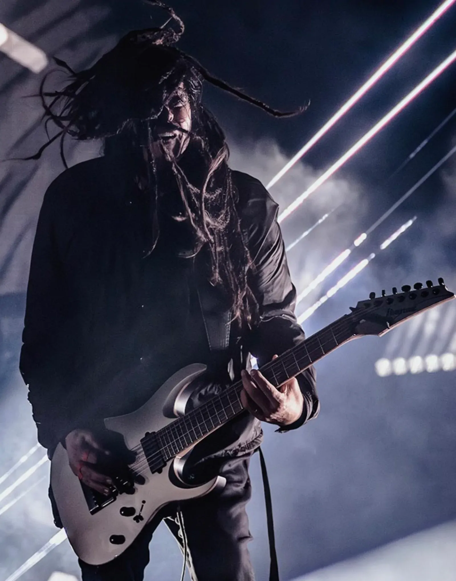 The Ibanez Prestige K7 YIN is Munky’s 7-string signature model in black. It features a nyatoh body paired with a Wizard II-7 five-piece maple/walnut neck for clarity and stability. The ebony fingerboard holds 24 jumbo frets and is fitted with luminescent side dots. Two DiMarzio Blaze humbucker pickups provide a powerful, aggressive tone, controlled via master volume, tone, and a three-way switch. The guitar includes an Edge tremolo with U-bar, locking nut, and black hardware to match its dark finish. At Riffs & Licks Music, we think it’s a raw and reliable instrument that delivers Munky’s signature tone with modern tuning stability.