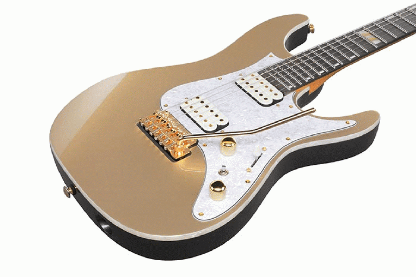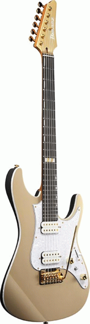 The Ibanez KRYS10 Scott LePage Signature Electric Guitar, finished in Metallic Gold, is as dynamic and stylish as the artist himself. Inspired by the Ibanez AZ model, this signature model is striking in its Metallic Gold finish, resplendent with gold hardware and Off-set white block inlays with a KRYS special inlay on the 12th fret.