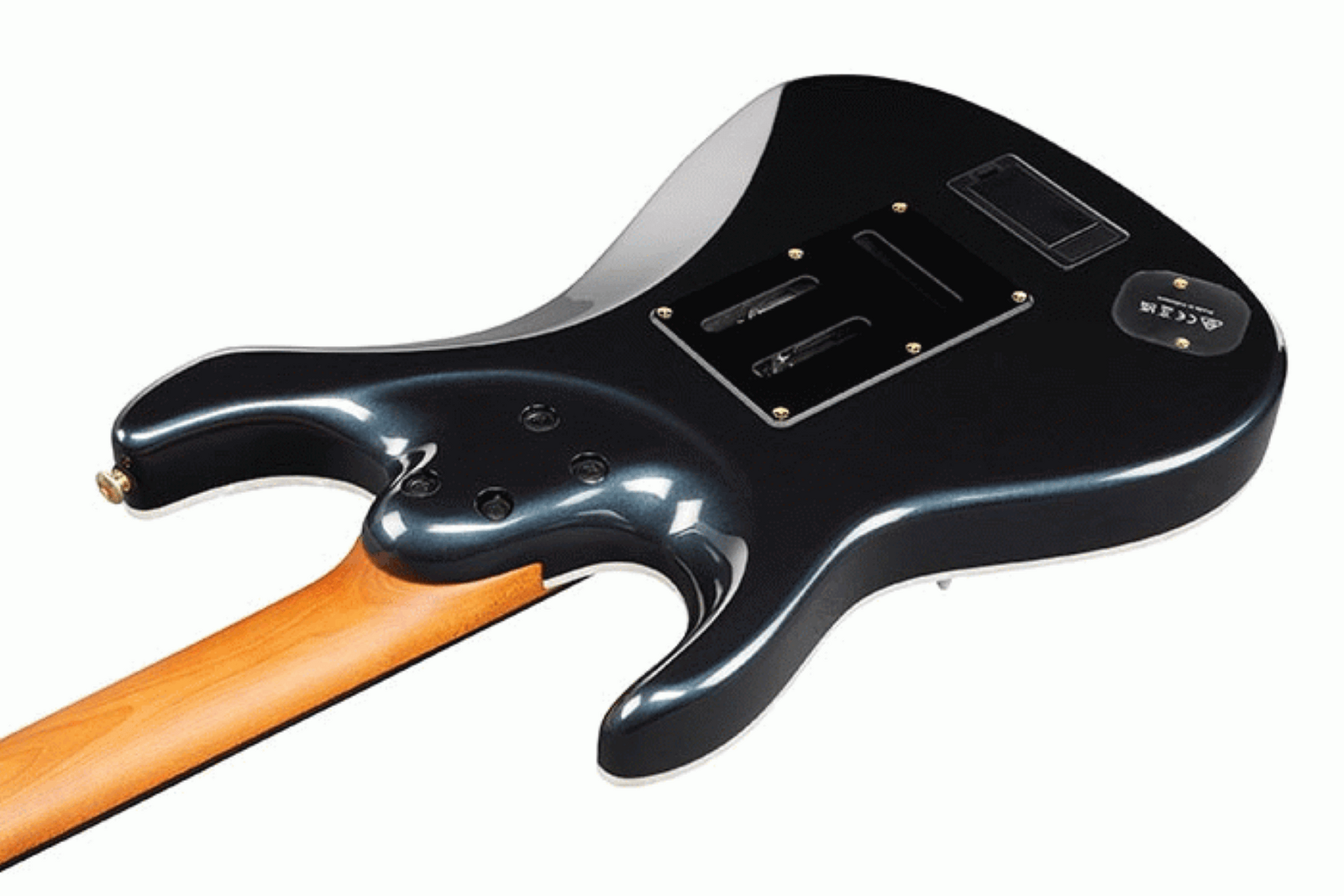 An Oval C profile Roasted Maple neck is heat-treated for enhanced stability, durability, moisture resistance and tolerance for temperature change. The Graphite reinforcement rods provides massive sustain and excellent stability. An Ebony fretboard produces tight lows and mid range with a strong attack in the high end and features a quick response and rich sustain. Combined with an ergonomic sculpted neck heel, this guitar is built for speed. A Gotoh T1502 tremolo and MG-T locking tuners take care of all your whammy needs, while keeping your tuning rock solid and stable.