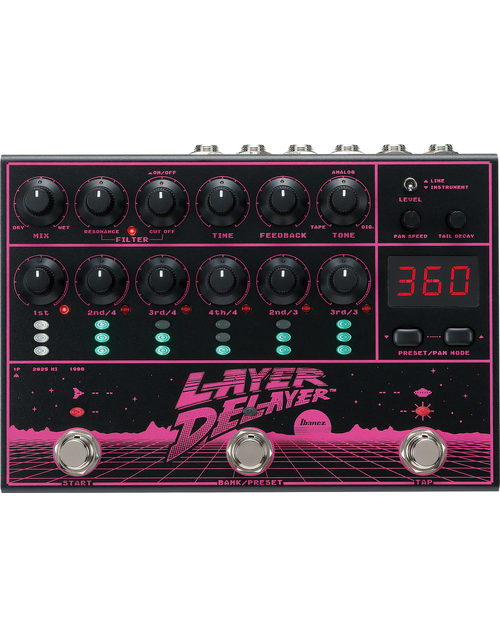 The Ibanez Layer Delayer is a revolutionary pedal that redefines the possibilities of delay effects. Unlike traditional tape echoes, this innovative device generates 16th notes and triplets delay signals, each with independent volume controls, allowing you to create intricate rhythmic patterns and sonic textures.