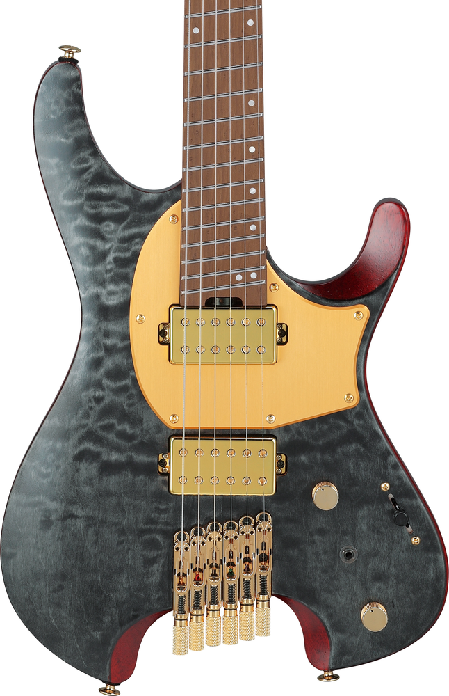 The Ibanez MGFM10 OBL Manuel Gardner Fernandes Signature Quest is a headless electric guitar designed for speed, comfort and versatility. It features a nyatoh body with a quilted maple top, paired with a roasted maple and bubinga Parallel Wizard neck and roasted birdseye maple fretboard for a smooth, stable playing feel. Jumbo stainless steel frets provide durability and effortless bends. Two Q58 humbuckers, combined with the dyna-MIX10 switching system and Alter Switch, offer a wide tonal range. The Mono-Tune bridge and custom string lock ensure precise tuning stability. At Riffs & Licks Music, we think this model is perfect for players who want a modern, ergonomic instrument with broad sonic flexibility.