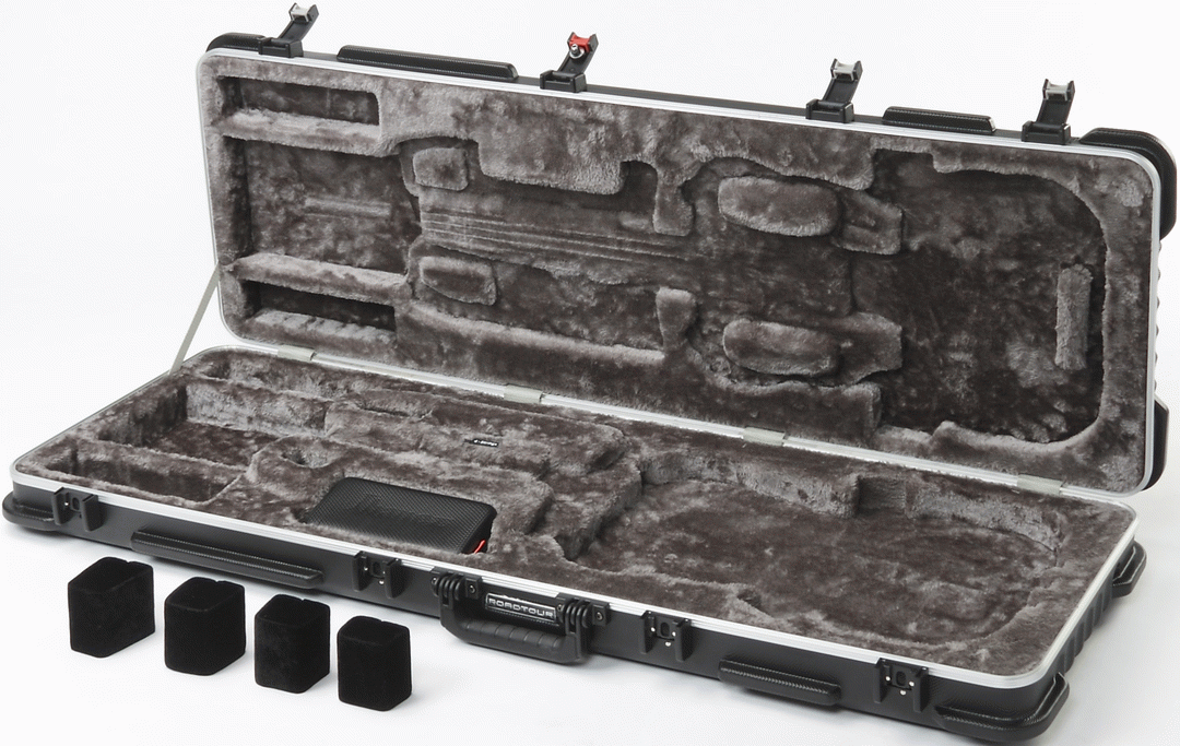 The rugged shell of the Ibanez MRB500C Road tour case protects your guitar from dents, scratches, dust and water. Inside, the MRB500C features a special mould design for accommodating many electric bass guitars, including left-handed models. The MRB500C Road tour case can even fit 4-string, 5-string and 6-string models. The MRB500C comes with its own Ibanez tool case and can be securely locked up while flying or traveling with it TSA-approved lock.