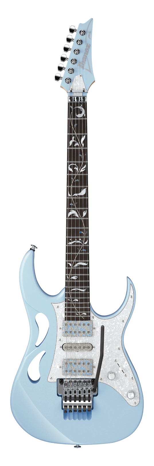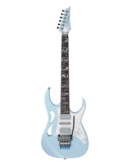 The PIA3761 BLP boasts exclusive features such as the Petal Grip, and a magnetic tremolo cavity plate for quick and hassle-free string changes and tremolo adjustments. The PIA Blossom inlay, prominently displayed on the fretboard, showcases Steve Vai's artistic vision. Additionally, the scalloped fingerboard on frets 21-24 and the Ultralite Tremolo Arm, made with Carbon Graphite for reduced weight and enhanced control, make this guitar a true standout.