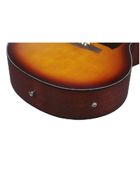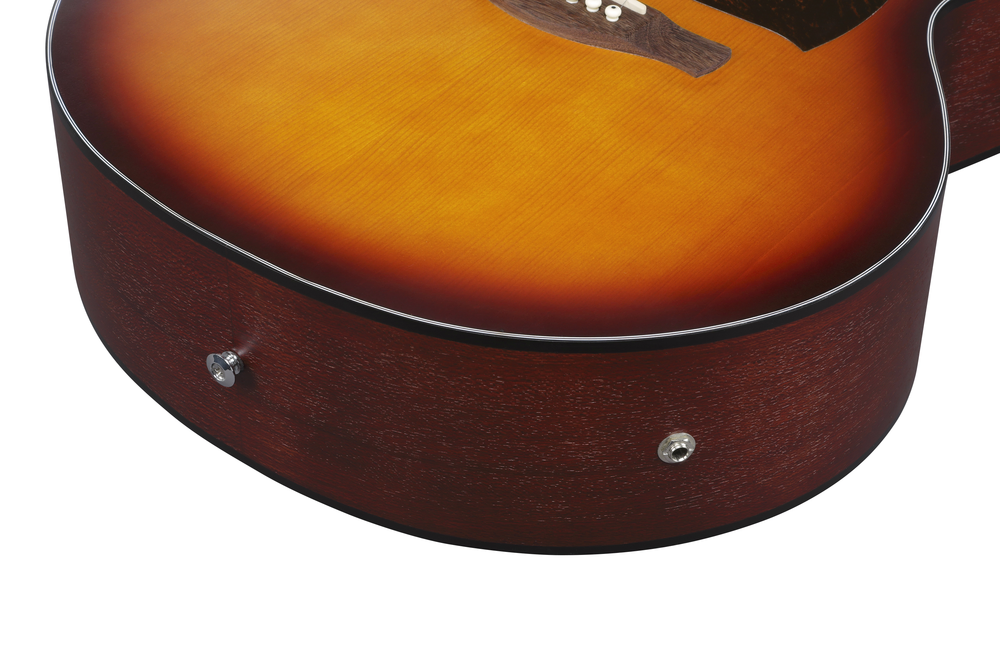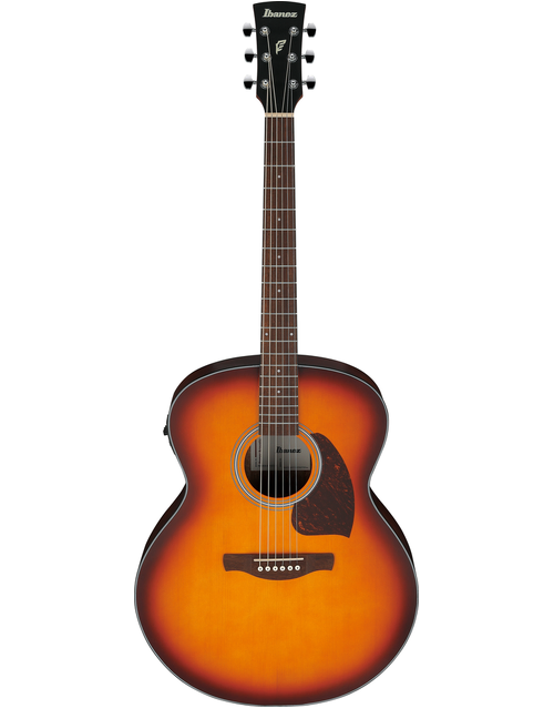 The Ibanez PJ50E in Open Pore Vintage Amber Sunburst/Natural is a jumbo acoustic guitar that blends professional-grade features with affordability. Its spruce top ensures pristine tonal clarity, while the meranti back and sides provide a warm, balanced tone. The nandu wood fretboard and bridge contribute to the guitar's natural resonance and warmth, making it a joy to play. Equipped with an Ibanez undersaddle pickup and AEQ-2T preamp, this guitar delivers accurate sound reproduction and onboard tone control for both treble and bass frequencies. The built-in tuner ensures convenient tuning, even when unplugged. Ibanez Advantage bridge pins make string changes quick and easy, while maintaining tuning stability. Perfect for beginners and professionals alike, the PJ50E offers quality and tone at an unbeatable price. At Riffs & Licks Music, we think the PJ50E combines reliable performance, exceptional tone, and incredible value for players of all levels, especially beginners.