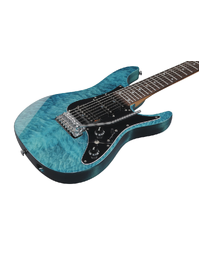 The Ibanez AZ447P1QM COB extends the AZ platform into 7-string territory, pairing a quilted maple top with a basswood body for a balanced response that keeps low-end clarity while maintaining articulation across the full range. The roasted maple neck offers enhanced stability and a smooth, consistent feel, suited to extended-range playing.