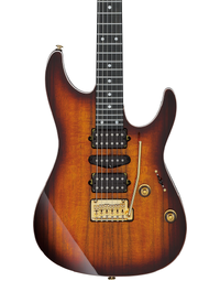 The Ibanez Premium AZ47P2K DEB pairs premium specifications with modern playability. It sports a Hawaiian koa top over an American basswood body, enhancing brightness and tonal balance. The roasted maple Oval C neck offers enhanced stability, while the ebony fretboard delivers tight lows and rich sustain with jumbo stainless steel frets. Three DiMarzio pickups—Air Norton, True Velvet, and The Tone Zone—cover a wide tonal range via a 5-way selector. Gotoh MG-T locking tuners and a T1502 tremolo ensure tuning stability and smooth expression. Ergonomic rear-body contours and a Super All Access neck joint enhance comfort and fret access. At Riffs & Licks Music, we think it’s a standout instrument combining craftsmanship, tonal versatility, and comfort.
