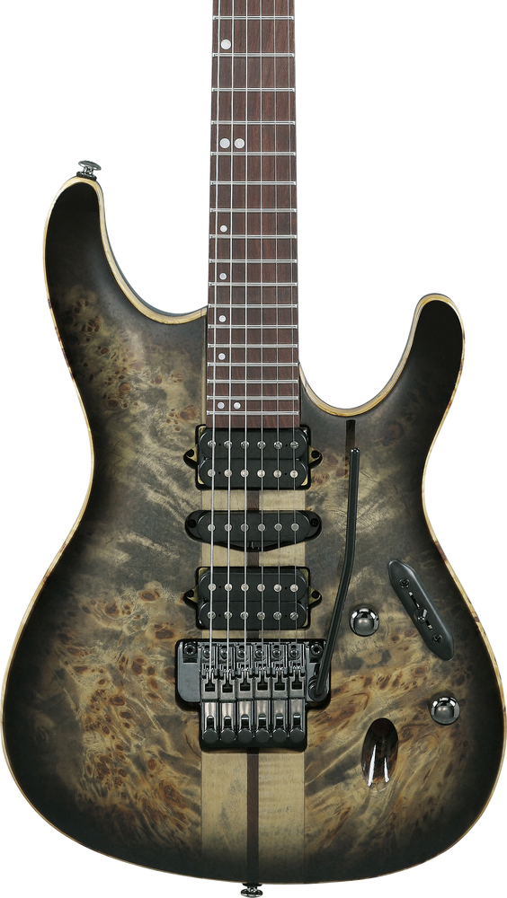 Ibanez Premium S1070PBZ CKB Poplar Burl Top Electric Guitar Charcoal Black Burst