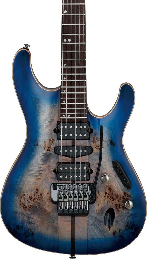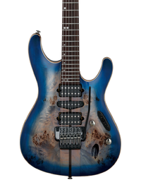 Ibanez Premium S1070PBZ CLB Poplar Burl Top Electric Guitar Cerulean Blue Burst