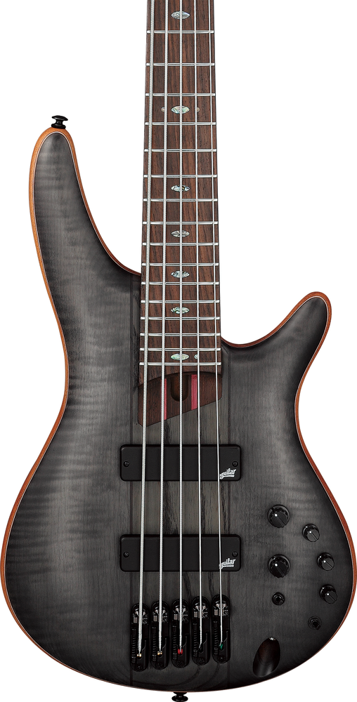 The Ibanez Premium SR1455DW TGF is a 5-string bass crafted for professional players who demand both tonal power and refined playability. Its flamed maple/ash top and back are matched with an African mahogany body, delivering articulate brightness with a warm, resonant mid-low foundation. The Atlas 5-piece panga panga/purpleheart neck with titanium reinforcement rods ensures exceptional stability and sustain, while the rosewood fretboard provides balanced tone and smooth feel. Equipped with Aguilar DCB pickups, this bass captures every nuance of dynamic playing styles, with the Ibanez Custom 3-band EQ and mid-frequency switch offering precise tonal sculpting. The MR5S bridge allows adjustable string spacing, while Gotoh machine heads provide reliable tuning accuracy. Finished in Transparent Gray Flat, and complete with a gig bag, this Premium series bass is built for serious performance and versatility. At Riffs & Licks Music, we think it’s the perfect instrument for players seeking high-end tone with modern flexibility.
