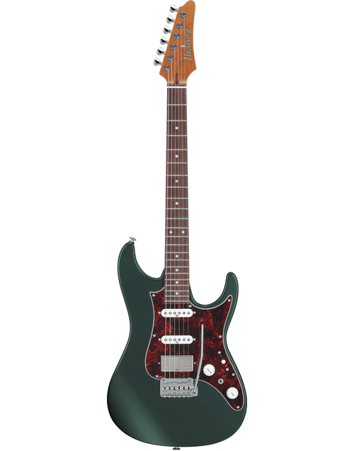 The Ibanez Prestige AZ2204N in Ivy Green Metallic Flat offers unmatched versatility, precision, and playability, making it a top choice for discerning guitarists. Its alder body provides a bright, balanced tone with rich sustain, while the S-TECH roasted maple neck ensures superior stability, durability, and a smooth grip. The rosewood fretboard, jumbo stainless steel frets, and compound radius enhance effortless playability across the fretboard. Equipped with Seymour Duncan Fortuna S-S-H pickups and the dyna-MIX9 switching system, this guitar delivers nine tonal variations, from humbucker warmth to single-coil clarity. The Gotoh T1702B tremolo bridge and Magnum Lock tuners ensure tuning stability and quick response. Ergonomic features like the Super All Access Neck Joint, non-recessed bridge cavity, and body contours enhance comfort during extended play. Includes a protective hardshell case. At Riffs & Licks Music, we think the AZ2204N is a masterful blend of innovation, craftsmanship, and tonal flexibility for players of all styles.