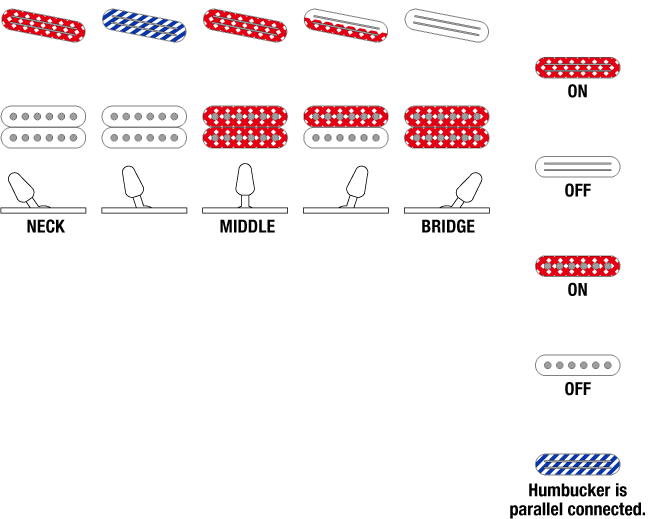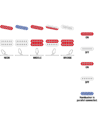| Controls | 1 Volume, 5-way pickup selector Switching: Neck / Neck (parallel) / Neck + Bridge / Inner coils / Bridge |