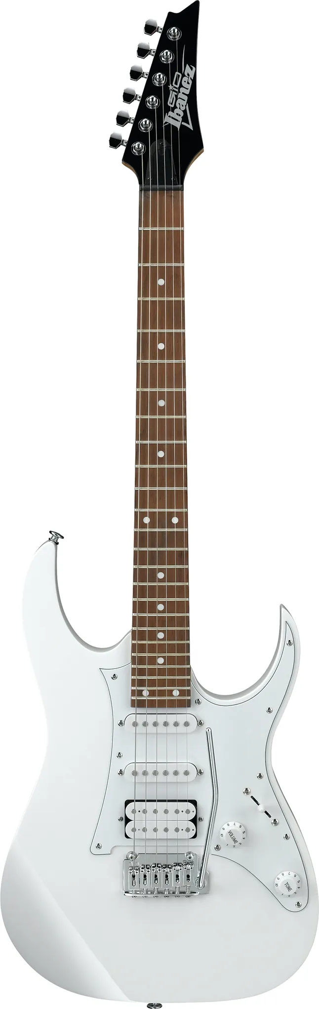 The Ibanez GRG140 WH Electric Guitar - White features a Maple Neck with Treated New Zealand Pine Fretboard, Poplar body, Infinity RS Pickups (humbucker and 2 single coils) and 24 frets for when you really need to shred!