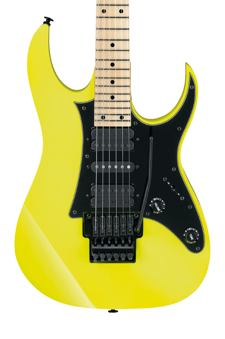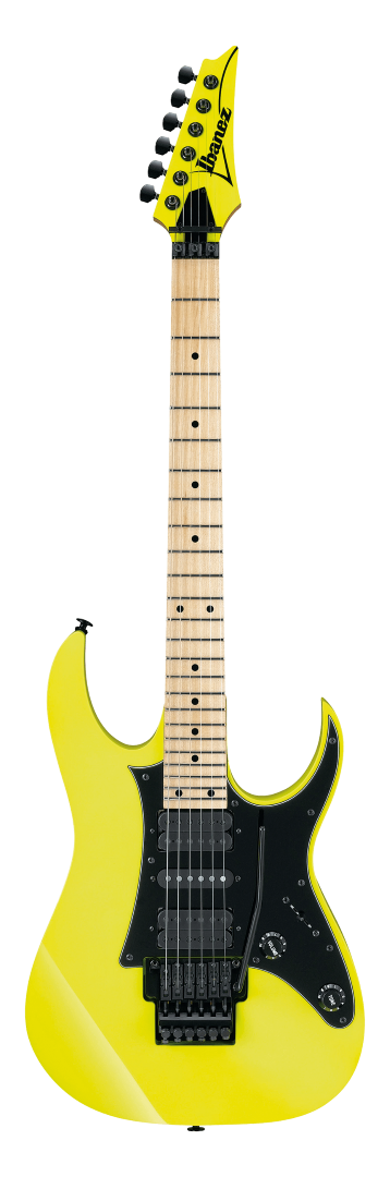 The Ibanez RG550 DY Genesis Electric Guitar, finished in Desert Sun Yellow, is part of the Genesis range, a tribute to the original generation of RGs. Combining Japanese master craftsmanship with precise modern manufacturing, Genesis RGs feature the same vintage designs and heavy-hitting performance that helped the RG shift the paradigm for shred machines. The vintage influence of the Genesis range is clear in the eye-catching design of the RG550; a striking Desert Sun Yellow finish is complemented by a matching-finish headstock, contrasting against a Maple fretboard and all-black hardware and appointments.