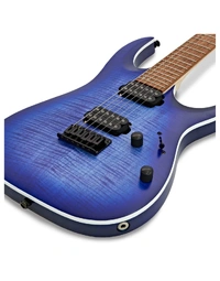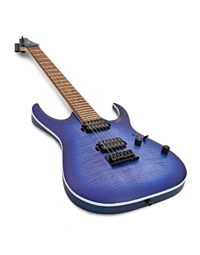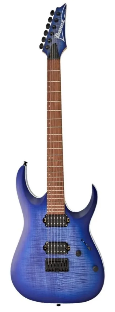 The RGA42FM is a hardtail, 6-string electric guitar that features a sultry Flamed Maple top with a white binding; a fast, thin Wizard III Maple neck; and a Rosewood fretboard with jumbo frets for maximum left-hand performance.Combined, the neck and fretboard provide a smooth, inviting playing surface and contribute to the RGA42’s warm, well-defined tonality. Also the directly mounted proprietary Quantum pickups offer an entire palette of thick, distorted tone textures that never sacrifice high-end articulation. A simple yet solid fixed bridge provides stable, dependable tuning and accurate intonation.
