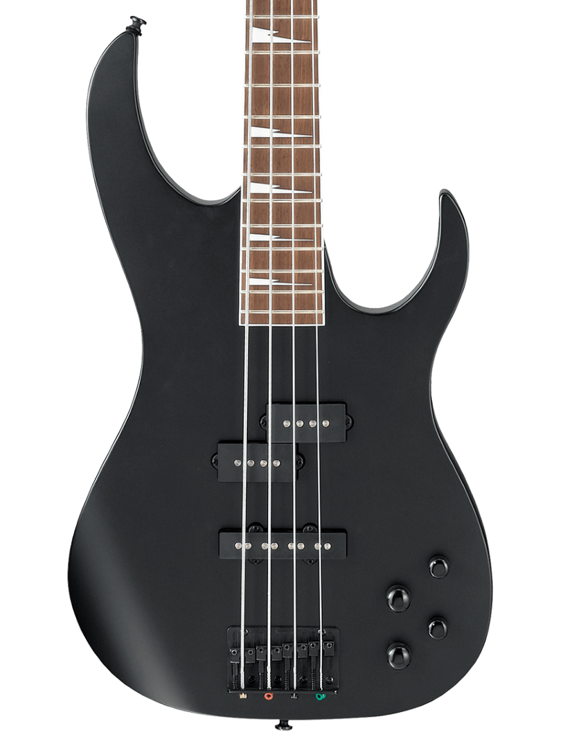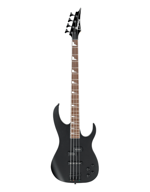 The Ibanez RGB300 is a 4-string bass that emphasises the heavy tones and lightning fast RG playability. With a maple neck with famous RG slim shape, Jatoba fretboard and 22 medium frets with sharktooth inlays, you'll be in bass playing bliss on this instrument. The poplar body delivers a balanced tone and is finished with the ever popular black flat finish. Included are a pair of Dynamic P & J bass pickups with Ibanez custom 2 band eq that delivers rich bass tone, from heavy lows to punchy mids and crisp highs. A B10 bridge keeps everything in tune and intonated.