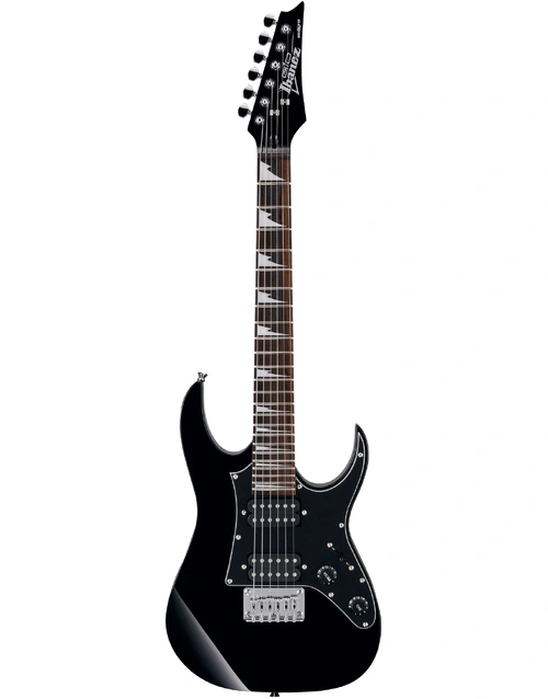 The Ibanez RGM21 offers a classic Ibanez look with it's sharp RG shape, 24 fret Jatoba fretboard with Sharktooth inlays, and smart high gloss black finish. Perfect for those who feel more comfortable with a smaller body, the Mikro size means you can focus on your playing, rather than holding the guitar. Whether it's for a young beginner or an adult player who wants something to jam with on the couch, the RGM21 suits a lot of needs.