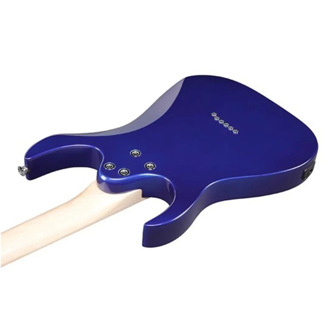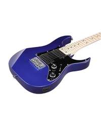 The Ibanez RGM21 Mikro is the shrunk down version of the classic Ibanez RG guitar. The shorter 564mm scale length means it's ideal for young rockers or just hanging out on the couch or the tour bus. Featuring a Poplar body with crisp Maple fingerboard on Maple RGM neck, you'll be shredding all day long on this axe! This one is finished in a beautiful Jet Blue that will turn heads. A pair of Ibanez Infinity humbucker pickups give you big tone out of a small package with huge bass response and tonal clarity, as well as coil-splitting for single-coil tones. The RGM21 still features all of the great quality hardware and precision finishing you expect on Ibanez models that are much more expensive. Get shredding and go Mikro today!