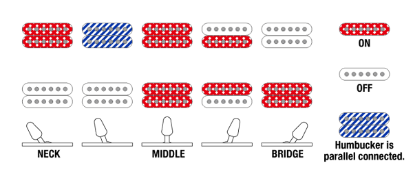 | Controls | Volume, Tone, 5-way pickup selector switch |