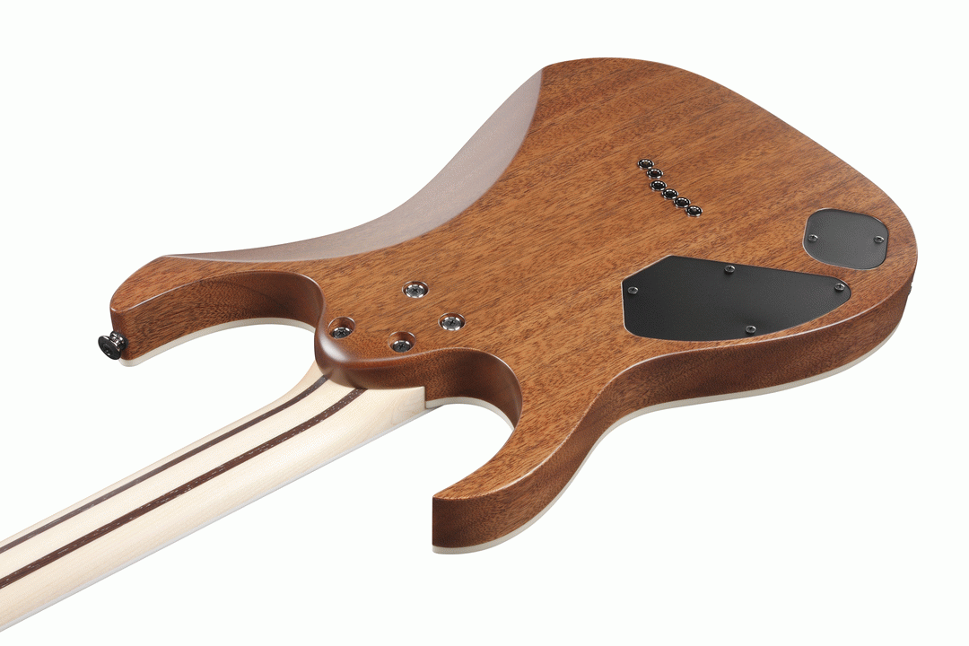 The Ash top displays a beautiful wood grain and the African Mahogany body delivers a rich mid-low end. Bare Knuckles' high output Brute Force produce a deep, saturated tone with chilling clarity, perfectly fitting into today's metal mayhem. The Gotoh MG-T locking machine heads achieve incredible tuning stability, cutting down string-changing time. The Gibraltar Standard II is a simple fixed bridge designed provide optimal transfer of each string's vibration and its smooth surface maximizes playing comfort. The coil tap switch adds sound and tonal variations for both pickups. Ibanez Hardshell case gives you extreme protects for your be-loved instrument.