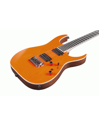 The Ibanez RGR5221 TFR Prestige Electric Guitar W/Case in Transparent Fluorescent Orange - The RG is the most recognizable and distinctive guitar in the Ibanez line. Three decades of metal have forged this high-performance machine, honing it for both speed and strength. Whether you favor a hardtail (fixed) bridge or our industry-leading locking tremolo system, the RG is a precision instrument. There are three principles behind the Ibanez Prestige line: Precision, Performance, and Playability. Prestige combines high-tech manufacturing techniques with old-world Japanese craftsmanship, in order to achieve true innovation in design and construction. The series incorporates ideas and suggestions from musicians from around the world as the cornerstones of the Prestige production process.