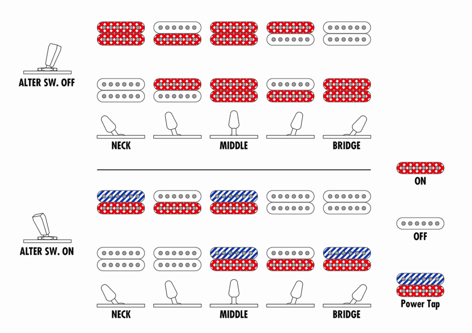 | Electronics | 1 Volume, 1 Tone, 5-way lever switch, dyna-MIX10 Switching System w/ Alter Switch |