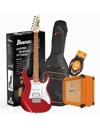 The Ibanez RX40CA Electric Guitar Starter Pack, in Red, includes an Ibanez RX40CA Electric Guitar, Orange Crush 12 Amplifier, Armour ARM1250 Gig Bag and Armour GS10 Lead - everything you need to start playing guitar, in one pack. This beginner electric guitar pack represents great value for money, is perfect for the beginner guitarist, and a great gift for a birthday or Christmas.