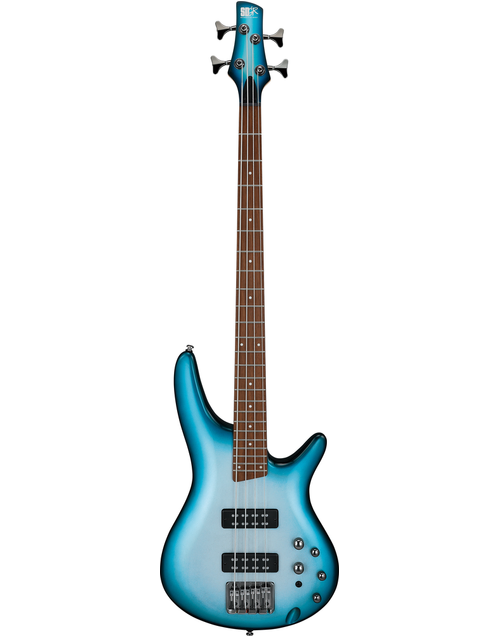 The Ibanez SR300E DOT Electric Bass in Deep Ocean Metallic offers exceptional playability and versatile tone control for bass players of all levels. Its 5-piece maple/walnut neck delivers clarity and precision, while the jatoba fretboard adds warmth and depth. The lightweight Nyatoh body ensures comfort without compromising rich, resonant sound. Equipped with PowerSpan Dual Coil pickups and a 3-way Power Tap switch, this bass provides three tonal options: humbucker warmth, single-coil clarity, and enhanced single-coil tones. The Ibanez Custom Electronics 3-band EQ offers precise tonal sculpting, while the Accu-cast B120 bridge ensures superior string stability and accommodates heavy gauges with ease. At Riffs & Licks Music, we think the SR300E blends sleek design, versatile electronics, and ergonomic comfort, making it perfect for both beginners and seasoned performers.