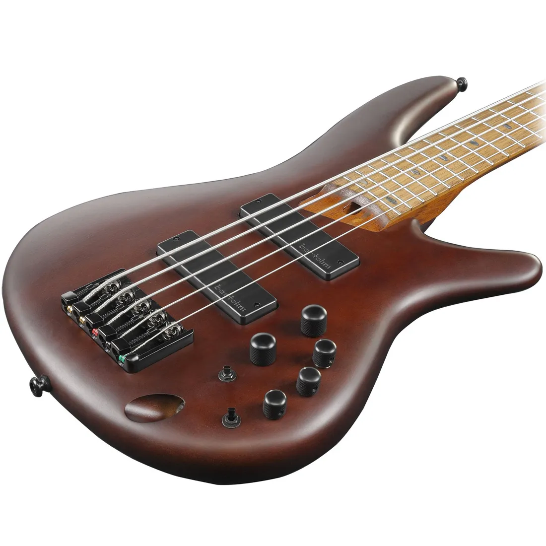 The SR505E is one of Ibanez's most popular 5 string models. Having built a solid reputation as a reliable workhorse without costing the earth it is perfect for a busy studio and gig schedule. The bass provides smooth playability and offers a warm and fat low end. The Walnut and Jatoba neck combined with the extended neck joint makes the neck very easy to play and gives you access to the upper frets, ideal for soloing in Jazz or playing extended bass lines in funk. Excellent electronics, strong and stable body wood, and excellent playability make this bass a very versatile instrument. With a beautiful dark finish is the cherry on top for this appealing bass guitar design. For an all-round bass machine, the SR505E is at the top of the bill.
