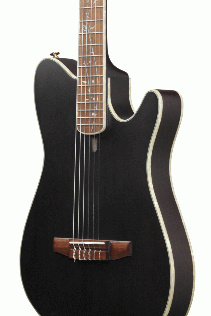 As an artist, Tim Henson is always trying to update, invigorate and reinvent his band’s image. He has taken that same approach with the TOD10N, his signature nylon string electric guitar. The TOD10’s most striking aesthetic feature may be the fingerboard inlay design, which Tim has dubbed as the “Tree of Death”. The name and the design are both nods to the iconic Ibanez “Tree of Life” inlay design, but with a twist.