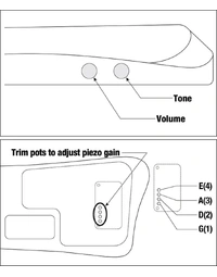 | Controls | 1 Volume, 1 Tone (Active), Trm Pots to Adjust Piezo Gain (Back of Bass) |