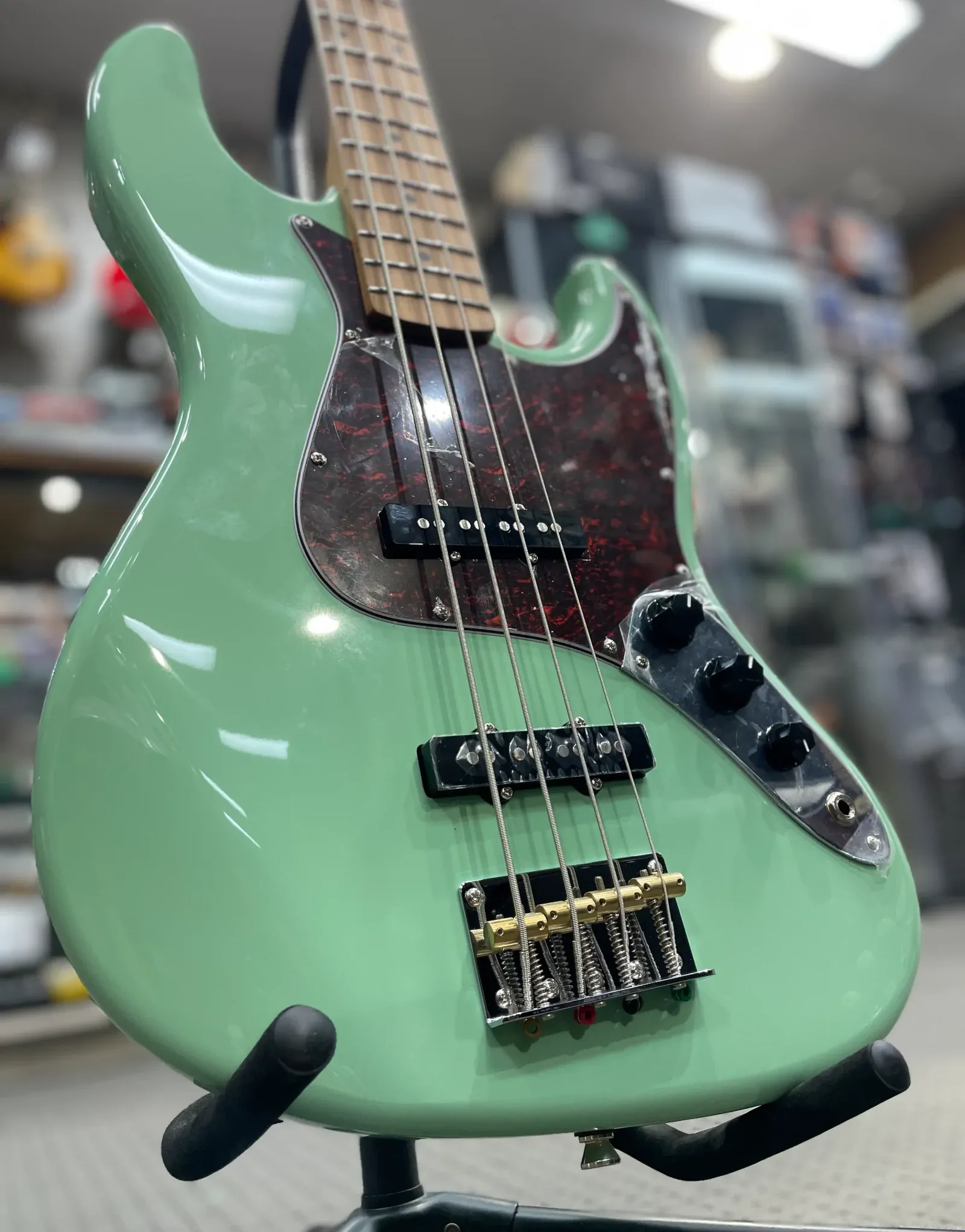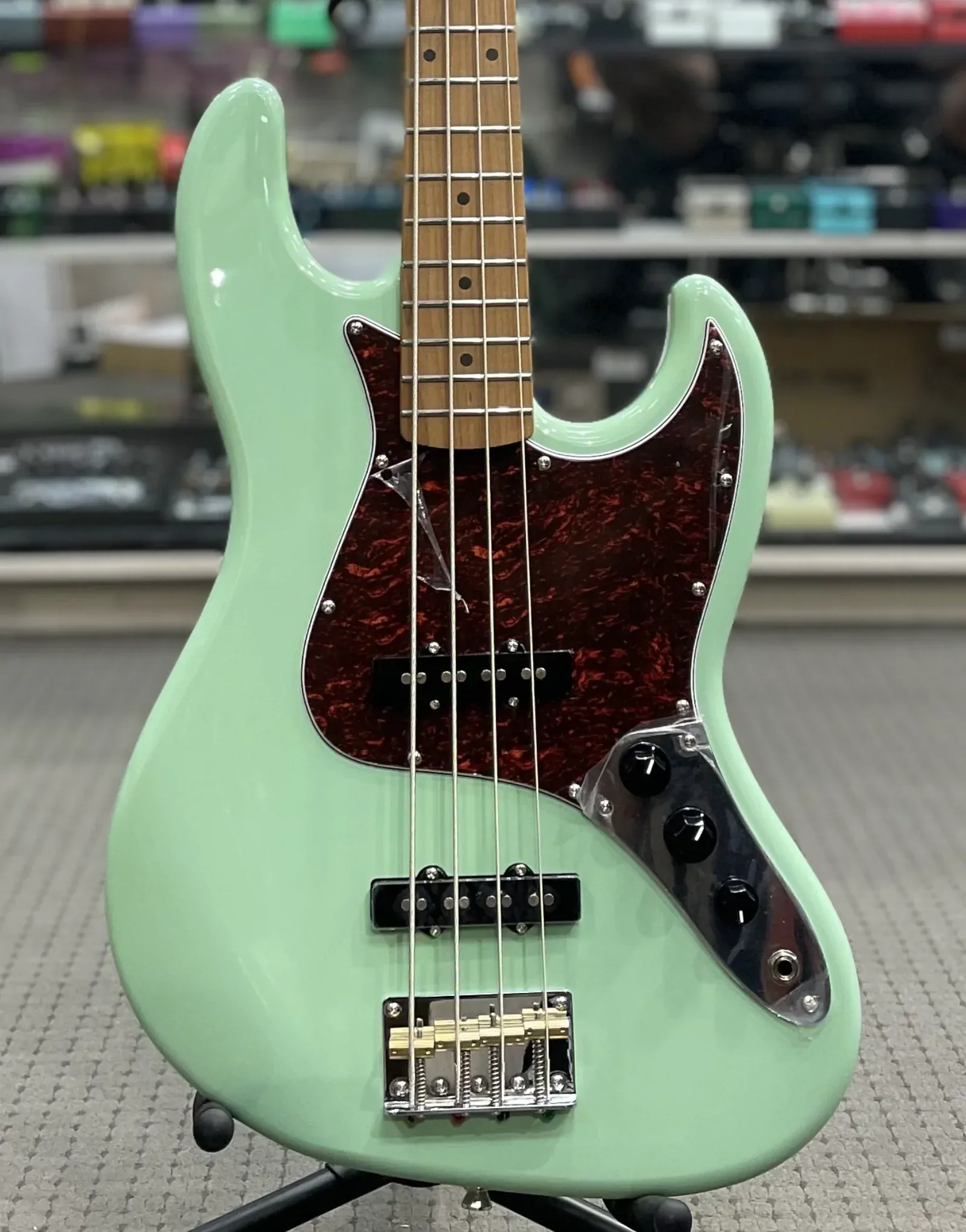 At Riffs & Licks Music, we think if you're looking for a quality, affordable beginner/intermediate instrument, the JET Guitars JJB-300 Electric Bass Roasted MN Sea Foam Green, is well worth considering!