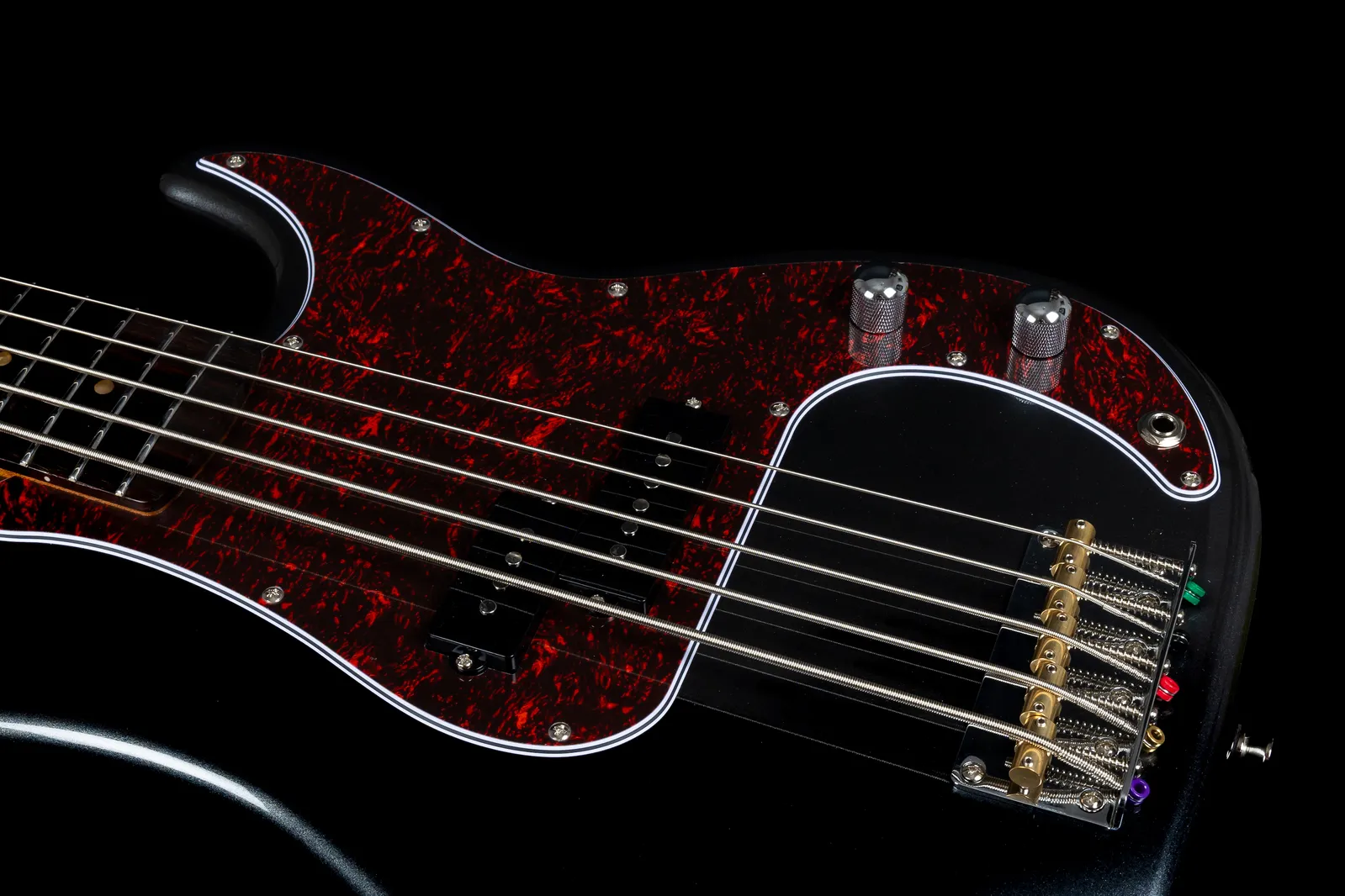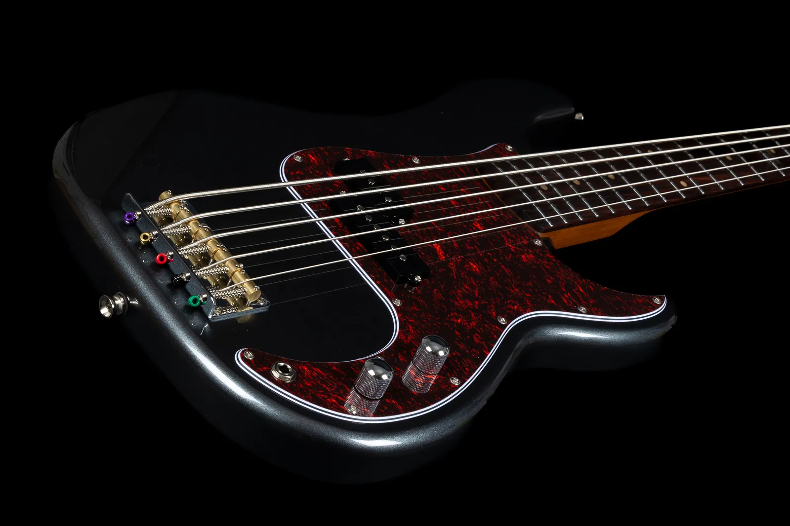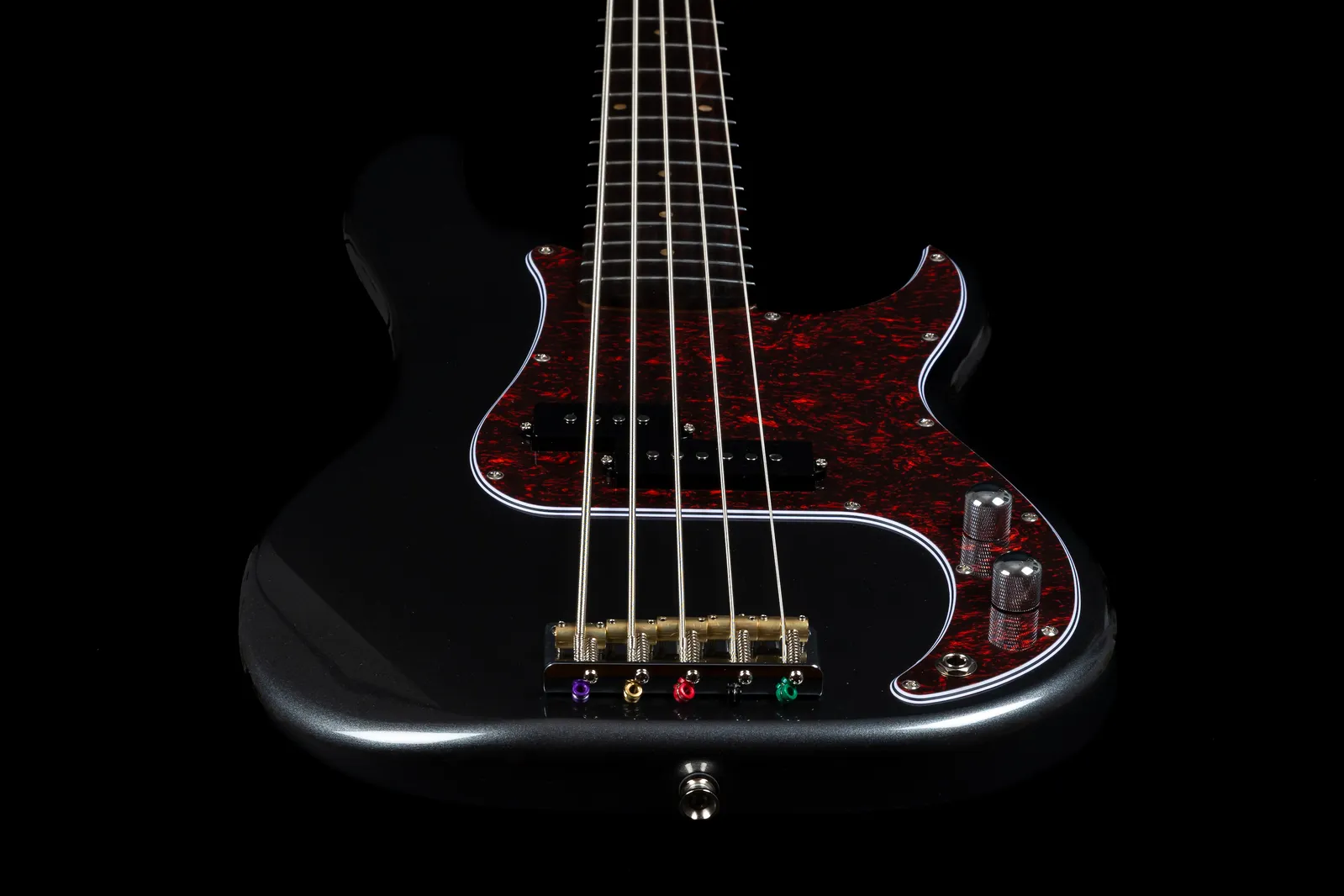 The JET Guitars JPB-305 5-String Electric Bass Roasted MN, finished in Charcoal, features a PB-style split-single-coil pickup, for classic Precision Bass tone, perfect for everything from mellow licks to beefy riffs. Premium features not usually found in guitars this affordable, like a Modern C-Profile Roasted Maple neck and Rosewood fingerboard, make for hours of easy and comfortable playability.