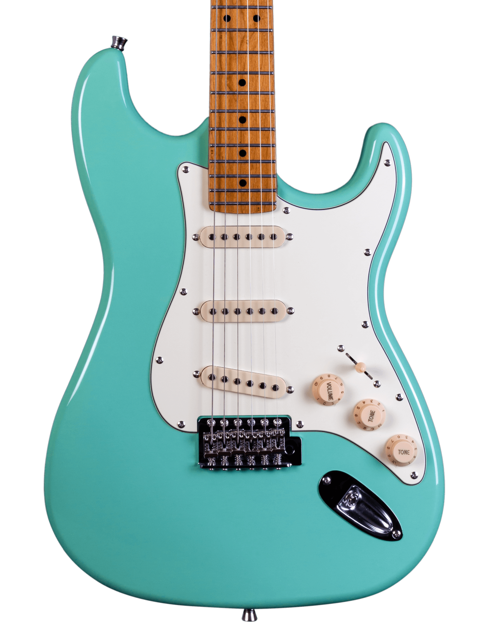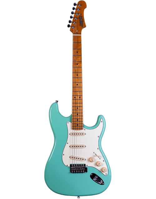 The JET Guitars JS-300 Electric Guitar Roasted MN in Sea Foam Green is a beautiful instrument that is perfect for beginners who want a guitar that is not only affordable, but also stylish and high-quality. With three ceramic single-coils, this guitar produces a bright, Strat-like tone that's perfectly at home with everything from clean pop to gained-up rock riffs. The modern C-profile Roasted Maple neck and fingerboard make for hours of comfortable playability, while the high-quality tonewoods and electronics ensure a long-lasting, reliable instrument.