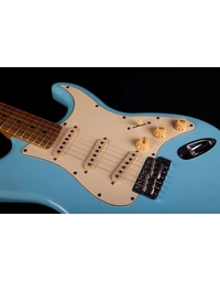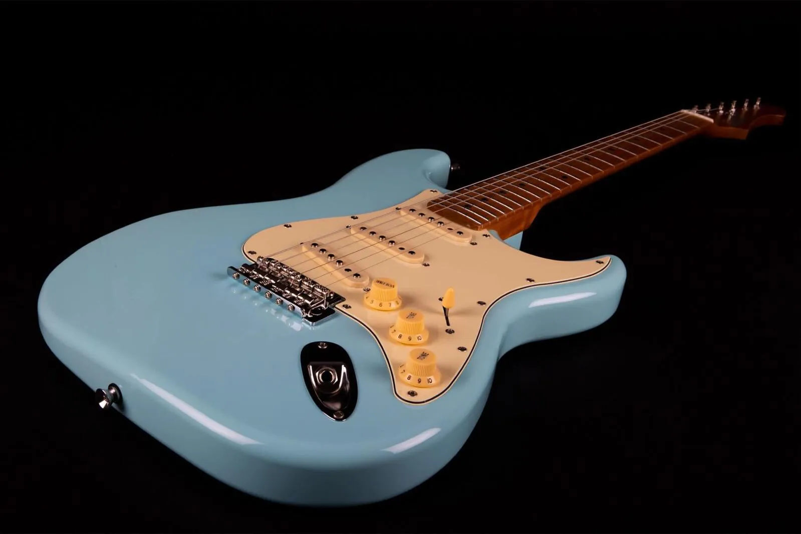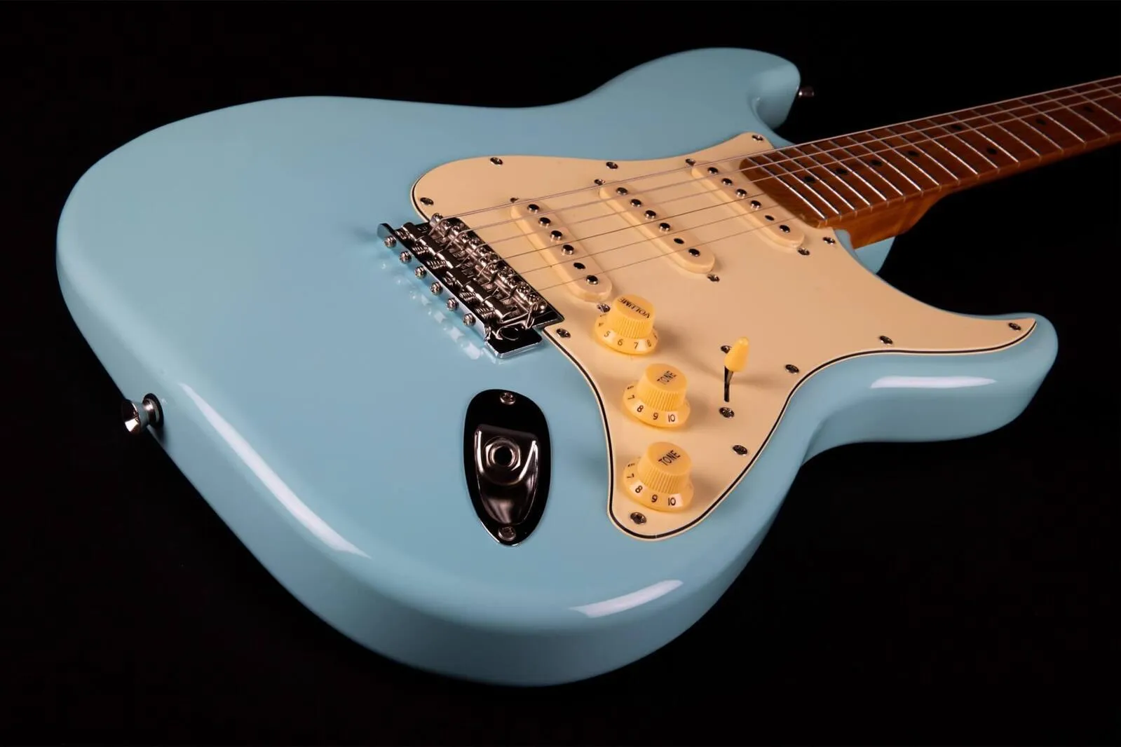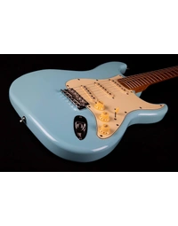 The JET Guitars JS-300 Electric Guitar Roasted MN in Sonic Blue is the perfect instrument for beginners who are looking for a guitar that is not only affordable, but also provides excellent quality and playability. With three ceramic single-coils, this guitar produces a bright, bell-like Strat tone that is perfect for a variety of genres. The modern C-profile Roasted Maple neck and fingerboard make for hours of comfortable playability, while the high-quality tonewoods and electronics ensure a long-lasting, reliable instrument.