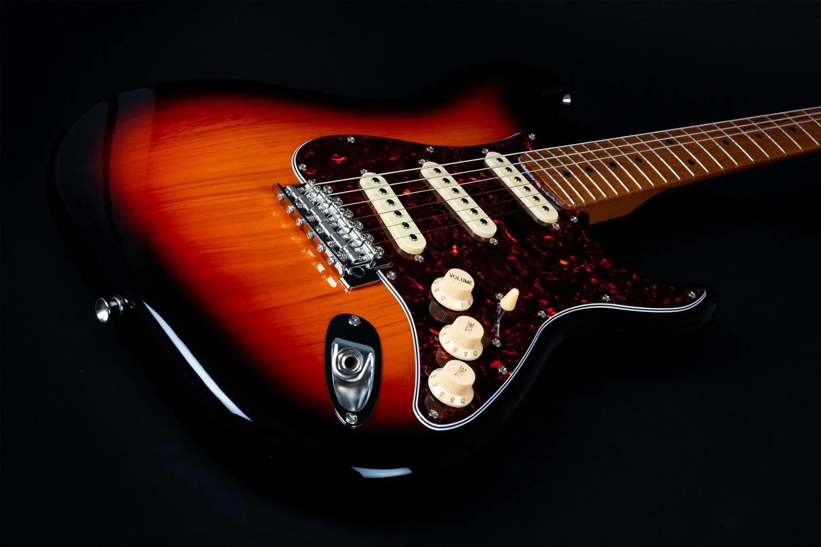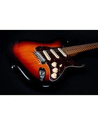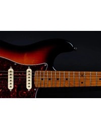 The JET Guitars JS-300 Electric Guitar Roasted MN in Sunburst is a stunning instrument that is perfect for beginners who want a guitar that is both affordable and high-quality. With three ceramic single-coils, this guitar produces a bright, bell-like tone that is perfect for a variety of genres. The modern C-profile Roasted Maple neck and fingerboard make for hours of comfortable playability, while the high-quality tonewoods and electronics ensure long-lasting reliability.