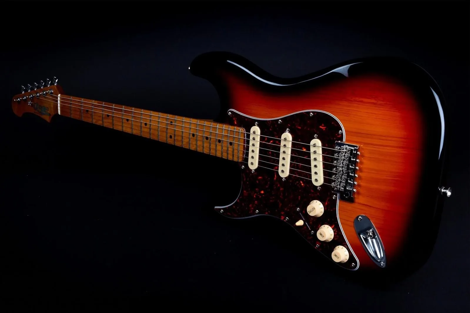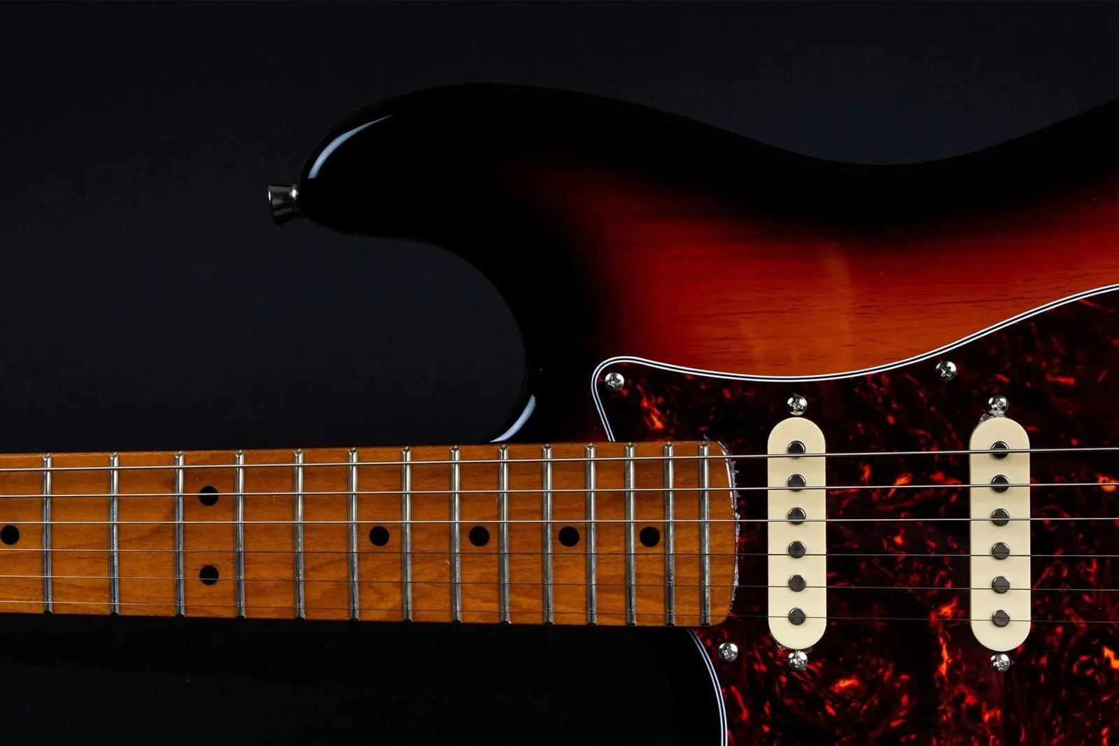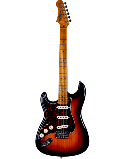 The JET Guitars JS-300 Left-Handed Electric Guitar Roasted MN in Sunburst is a stunning instrument that is perfect for beginners who want a guitar that is both affordable and high-quality. With three ceramic single-coils, this guitar produces a bright, bell-like tone that is perfect for a variety of genres. The modern C-profile Roasted Maple neck and fingerboard make for hours of comfortable playability, while the high-quality tonewoods and electronics ensure long-lasting reliability.
