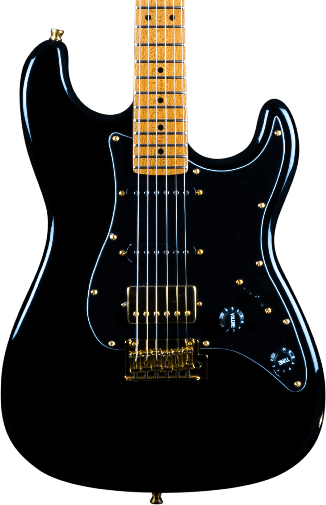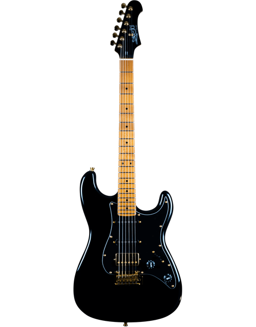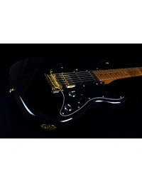 The JET Guitars JS-400 Electric Guitar HSS Roasted MN, finished in Black with Gold Hardware, is a sleek and stylish instrument that combines vintage and modern design elements. Featuring two ceramic single-coils and one ceramic humbucker, this guitar delivers a range of versatile tones that suit a wide range of playing styles. The Roasted Maple neck and fingerboard offer exceptional playability, while the high-quality tonewoods and electronics ensure a full and rich sound.