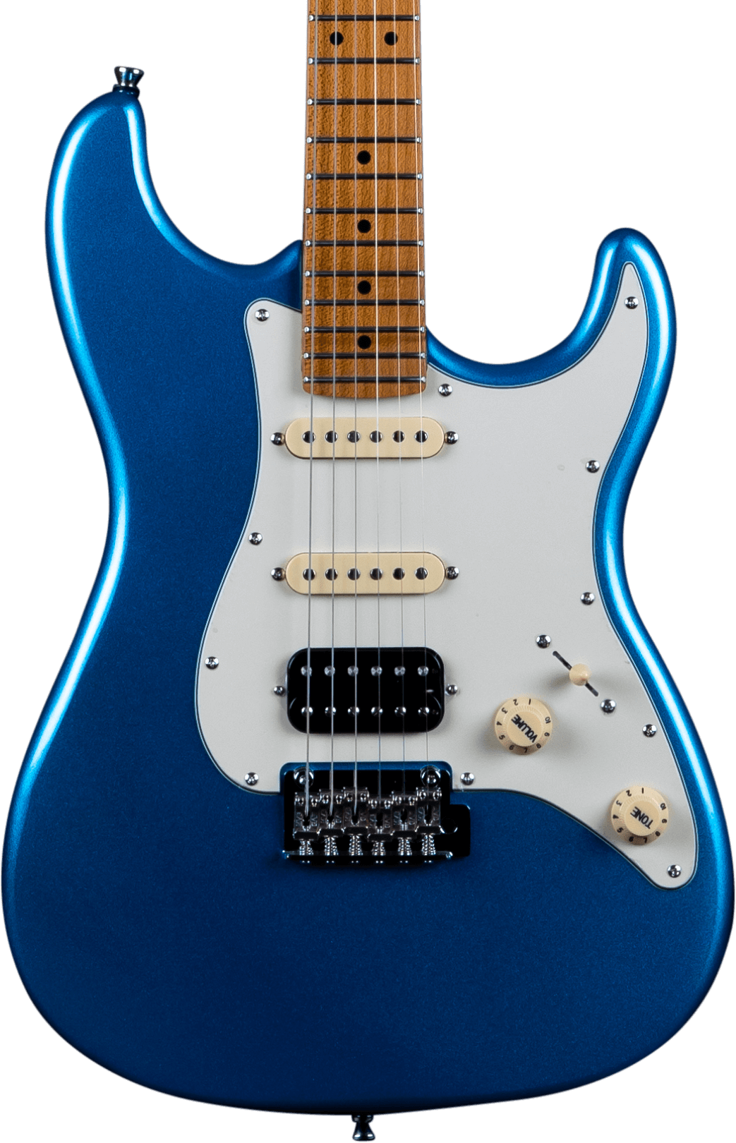 Introducing the JET Guitars JS-400 Electric Guitar HSS Roasted MN in Lake Placid Blue finish, the perfect combination of vintage style and modern features, all at an affordable price. The guitar boasts a sleek and comfortable Modern C-Profile Roasted Maple neck and fingerboard that makes playing a breeze. The two ceramic single-coils and one ceramic humbucker provide a wide range of tonal possibilities, making it perfect for players of all genres. The Lake Placid Blue finish gives it a classic and stylish look that will make you stand out on stage.