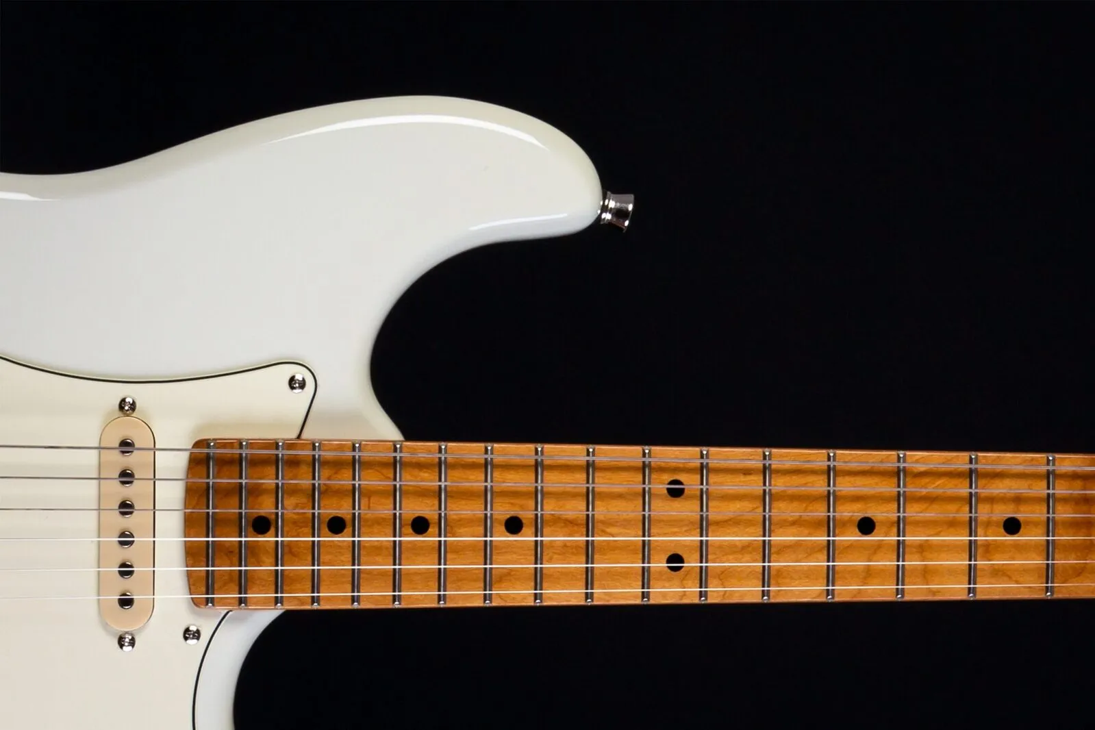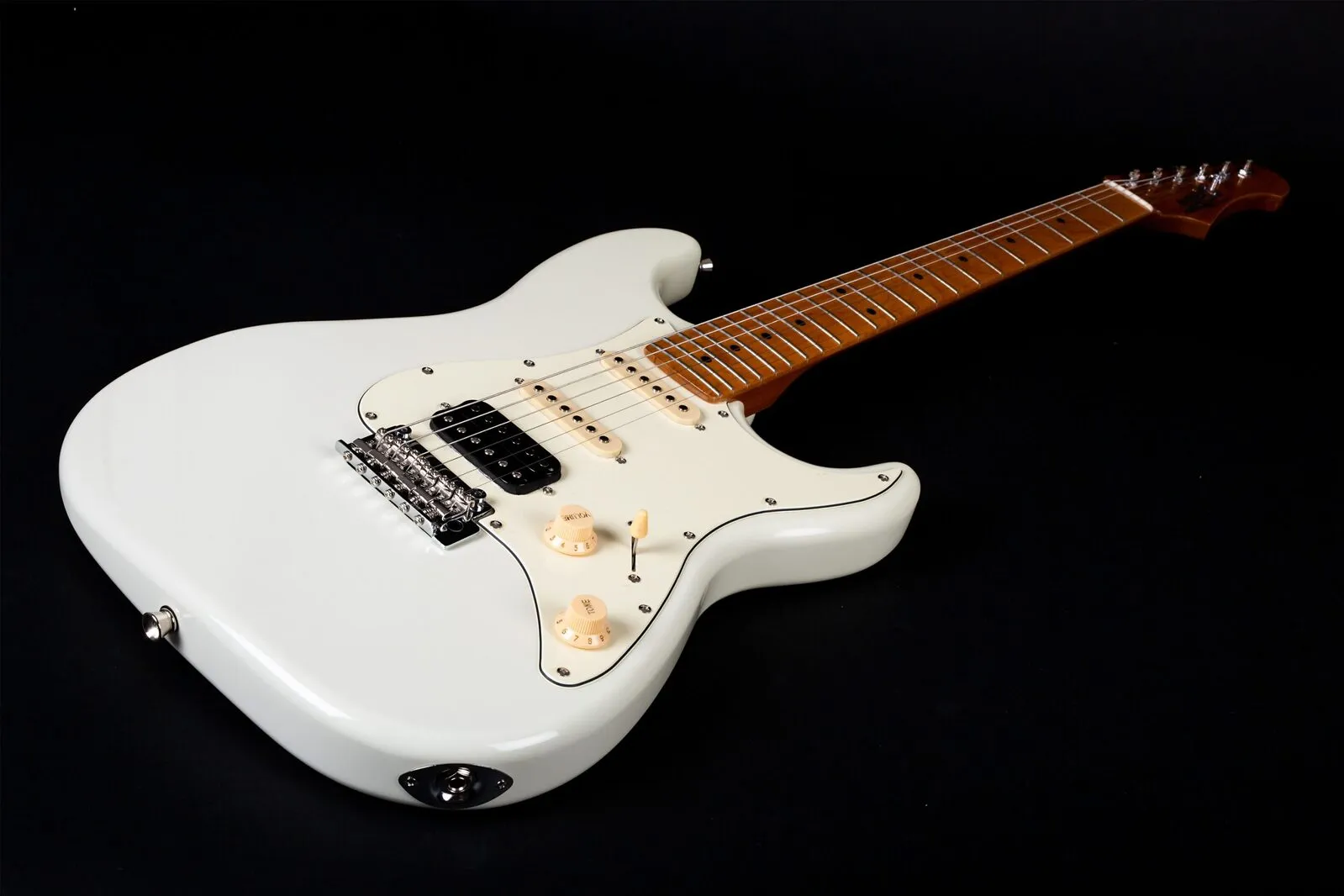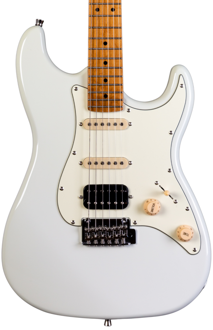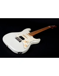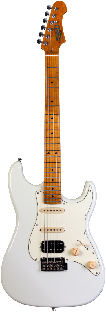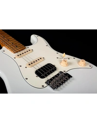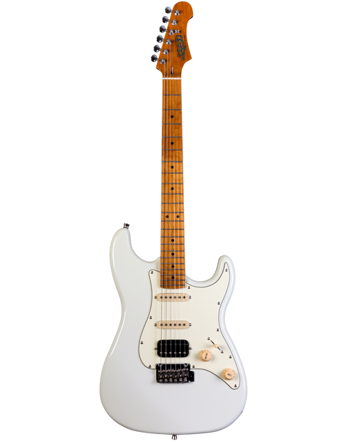 The JET Guitars JS-400 Electric Guitar HSS Roasted MN, finished in Olympic White, features two ceramic single-coils and one ceramic humbucker, perfect for everything from smooth bell-like Strat tone, to gained up modern riffs. Premium features not usually found in guitars this affordable, like a Modern C-Profile Roasted Maple neck and fingerboard, make for hours of easy and comfortable playability.