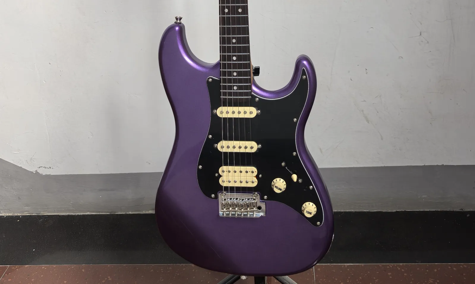 Introducing the JET Guitars JS-400 Electric Guitar HSS RW in Plum finish, the perfect combination of vintage style and modern features, all at an affordable price. The guitar boasts a sleek and comfortable Modern C-Profile Roasted Maple neck and Rosewood fingerboard that makes playing a breeze. The two ceramic single-coils and one ceramic humbucker provide a wide range of tonal possibilities, making it perfect for players of all genres. The Plum finish gives it a classic and stylish look that will make you stand out on stage.