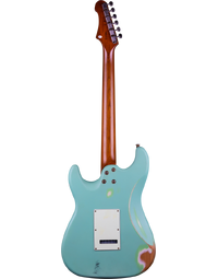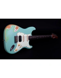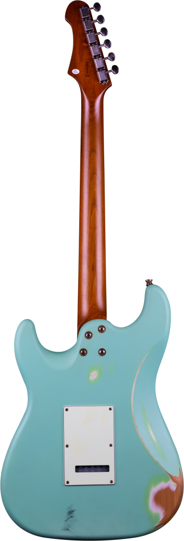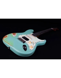 The JET Guitars JS-400 Relic Electric Guitar HSS RW, finished in Sea Foam Green, features two ceramic single-coils and one ceramic humbucker, perfect for everything from smooth bell-like Strat tone, to gained up modern riffs. Premium features not usually found in guitars this affordable, like a Modern C-Profile Roasted Maple neck and Rosewood fingerboard, make for hours of easy and comfortable playability. A relic finish gives this guitar the look of a played-in vintage instrument, and makes a nice feature of the tonewood's grain.