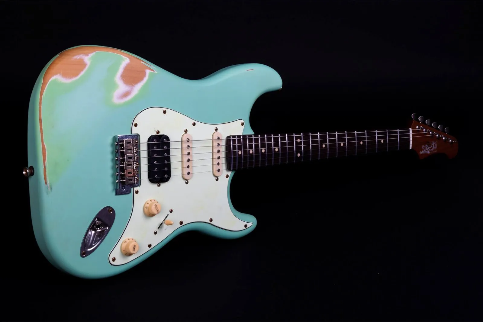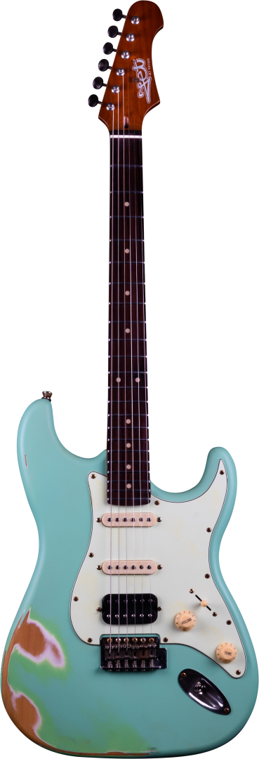 At Riffs & Licks Music, we think if you're looking for a quality, affordable beginner/intermediate instrument, the JET Guitars JS-400 Relic Electric Guitar HSS RW Sea Foam Green, is well worth considering!