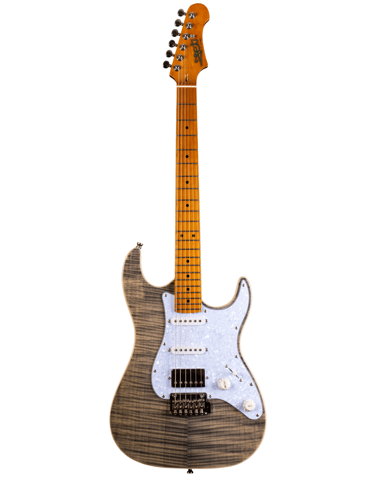 At Riffs & Licks Music, we think the JET Guitars JS-450 Flamed Maple Top Electric Guitar HSS Roasted MN Transparent Black is the perfect combination of style, comfort, and versatility - a great choice for your first guitar which will last you well into your intermediate playing years.