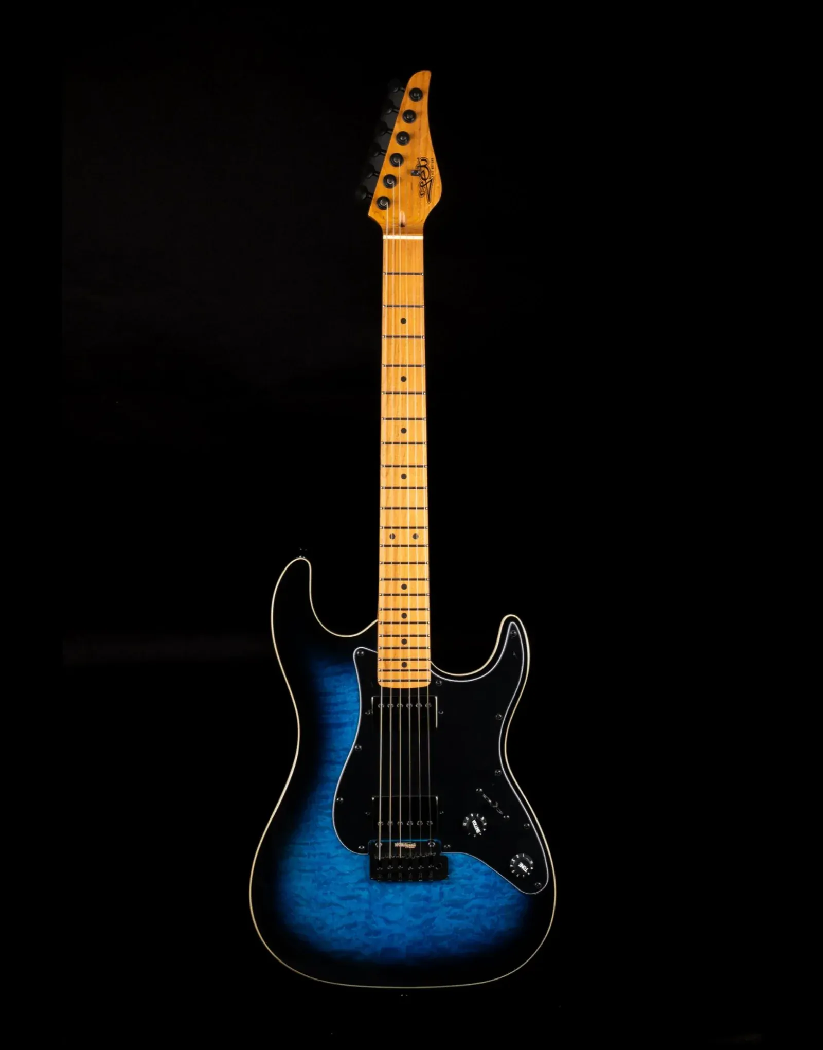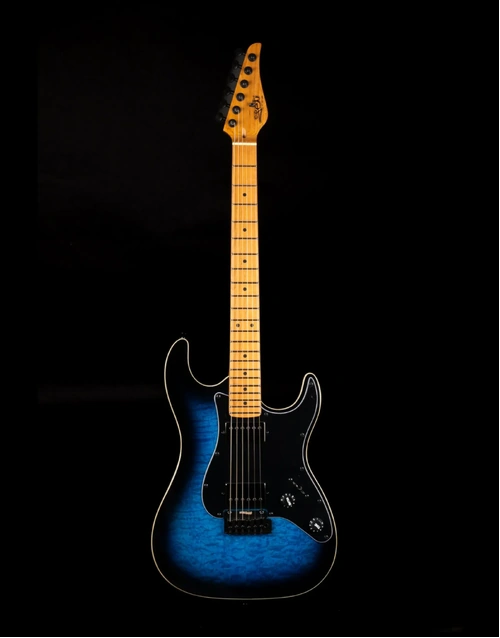 At Riffs & Licks Music, we think the JET Guitars JS-450 Flamed Maple Top Electric Guitar HH Roasted MN, finished in Transparent Blue Burst, is the perfect choice for any player who wants a stylish and versatile instrument without breaking the bank.