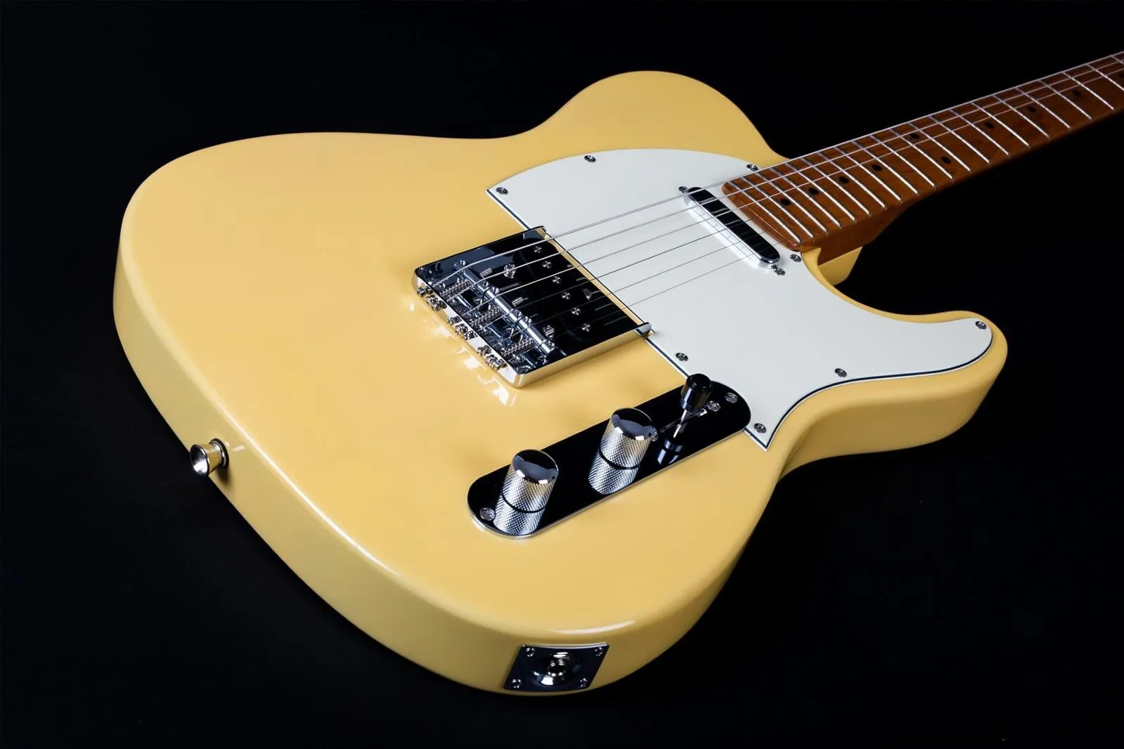 JET Guitars offers quality instruments, that are easy to play, at an affordable price. Combining vintage and modern designs, their JT-300 Electric Guitar in Butterscotch Blonde features ceramic single-coils, delivering classic Tele twang that can handle high gain settings. With a Modern C-Profile Roasted Maple neck and fingerboard, it provides hours of comfortable playability. JET Guitars' range of finishes and high-quality tonewoods and electronics make it an exciting option for any musician looking for an affordable electric guitar.