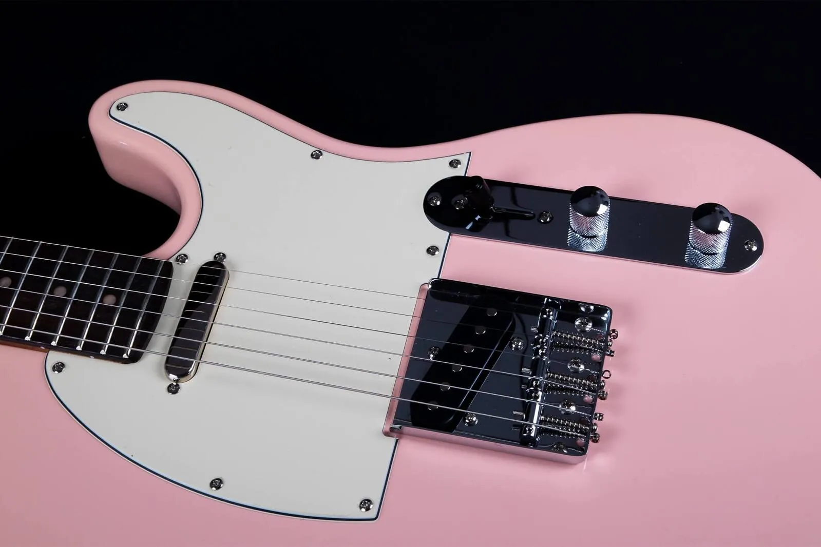 JET Guitars offers quality and affordable instruments that are easy and fun to play. Their JT-300 Electric Guitar RW in Pink blends vintage and modern designs with high-quality tonewoods and electronics. It features two ceramic single-coils for classic Tele twang, which handle themselves even when the gain is turned up. The guitar's premium features, including a Modern C-Profile Roasted Maple neck and Rosewood fingerboard, provide comfortable and effortless playing for extended hours.