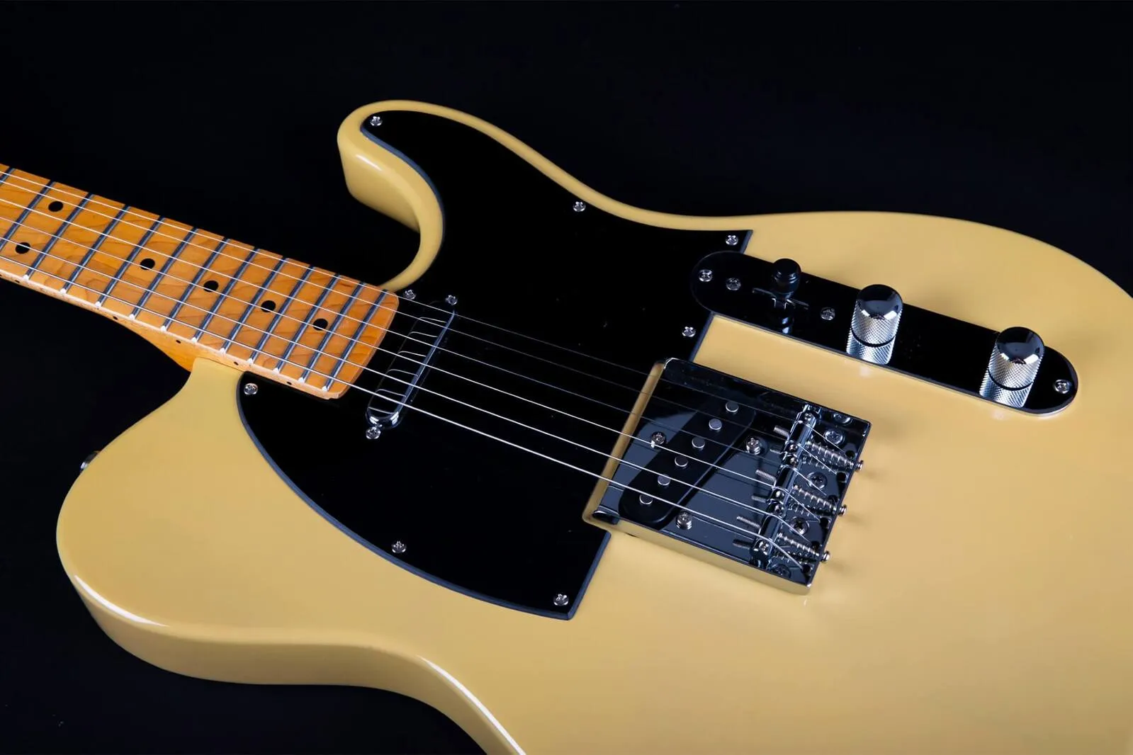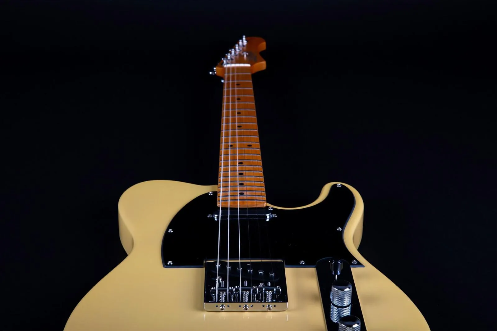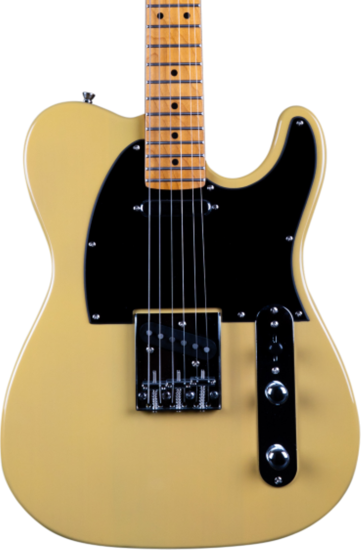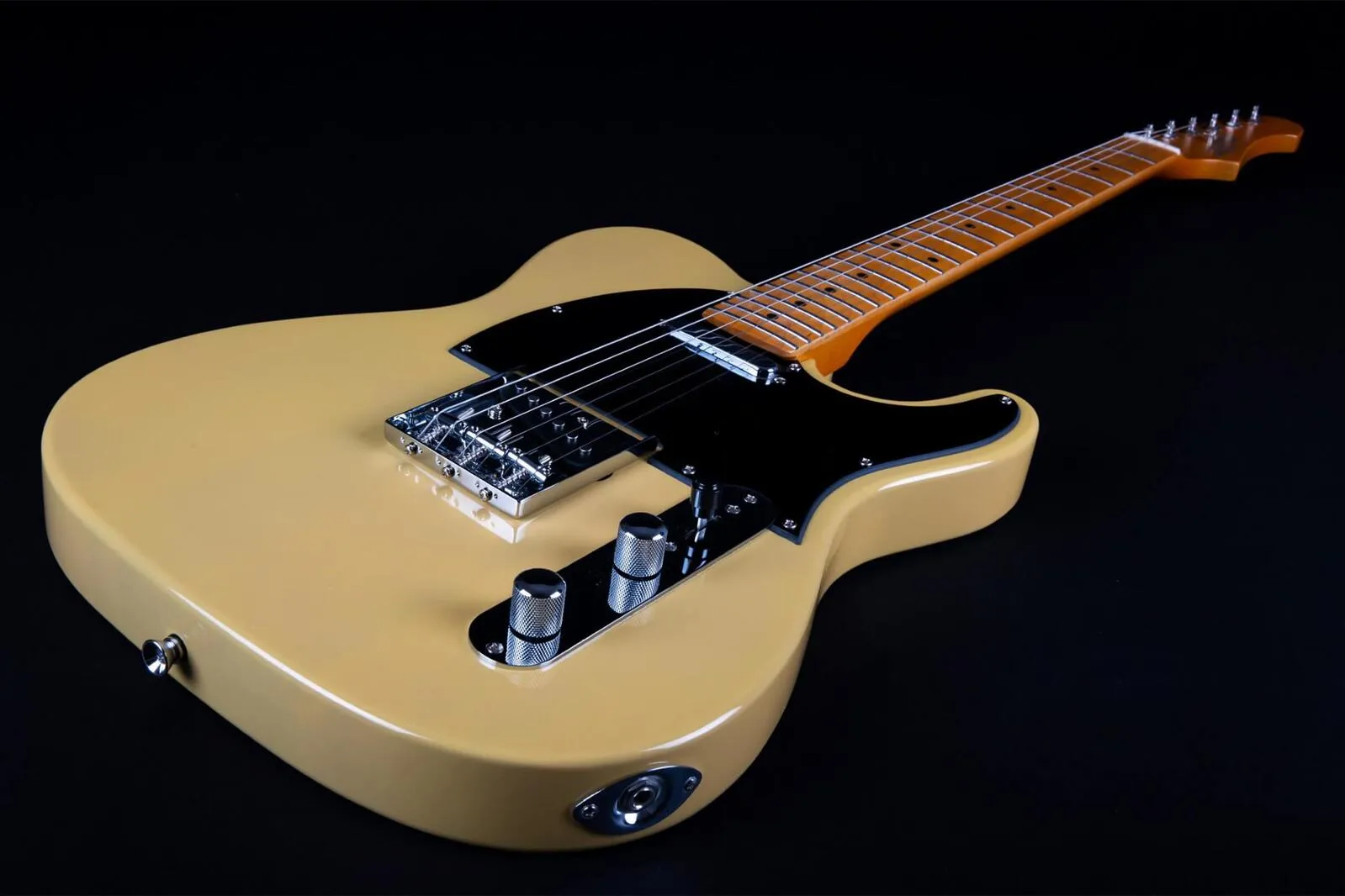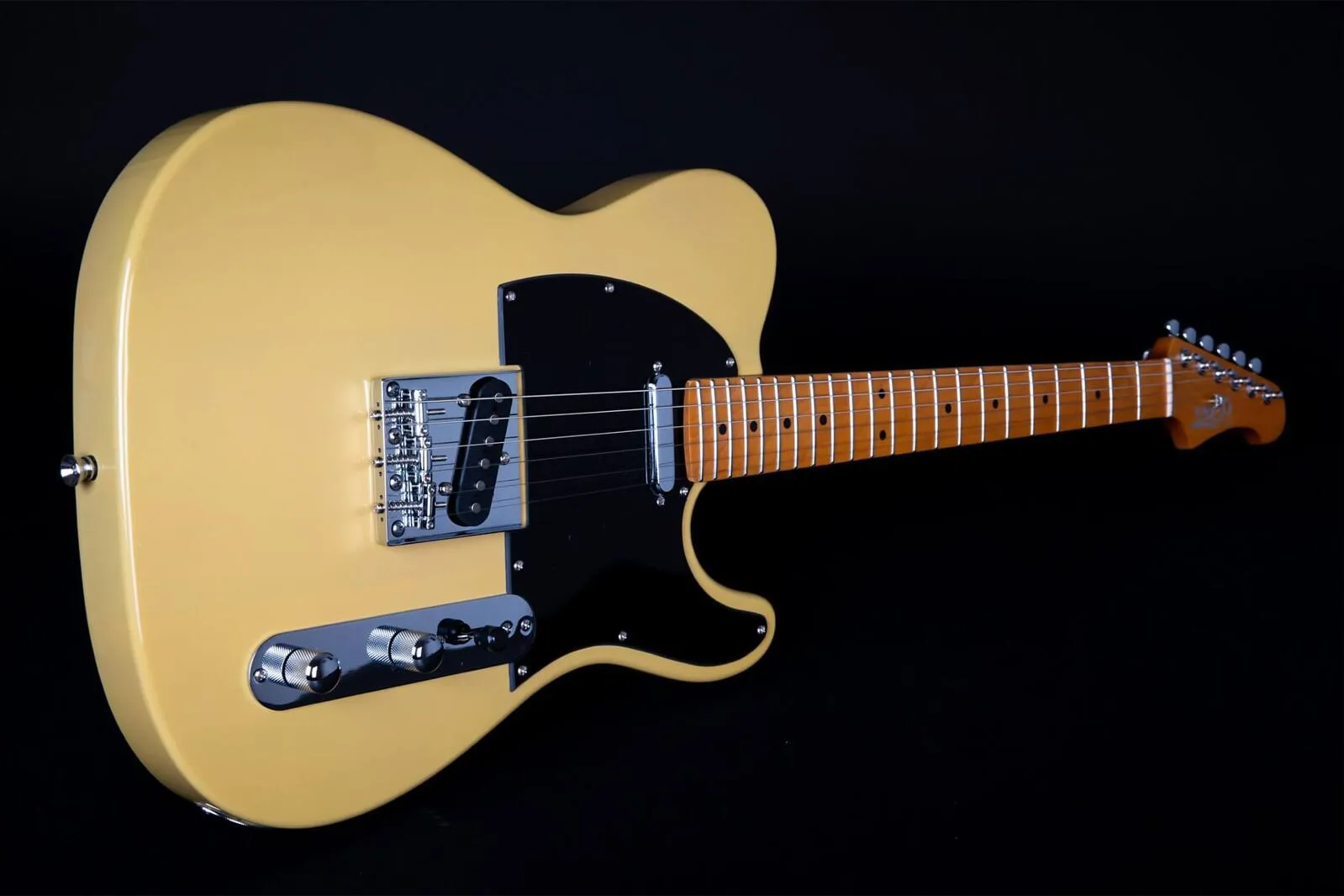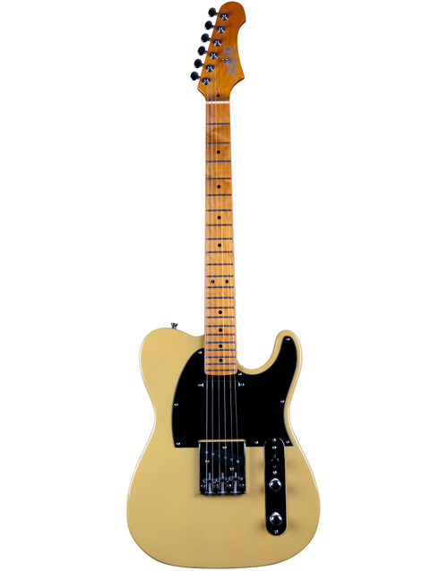 The JET Guitars JT-350 Electric Guitar MN, finished in Butterscotch Blonde, features a pair of alnico single-coils for classic Tele twang. Premium features not usually found in guitars this affordable, like a Modern C-Profile Canadian Maple neck and fingerboard, make for hours of easy and comfortable playability.