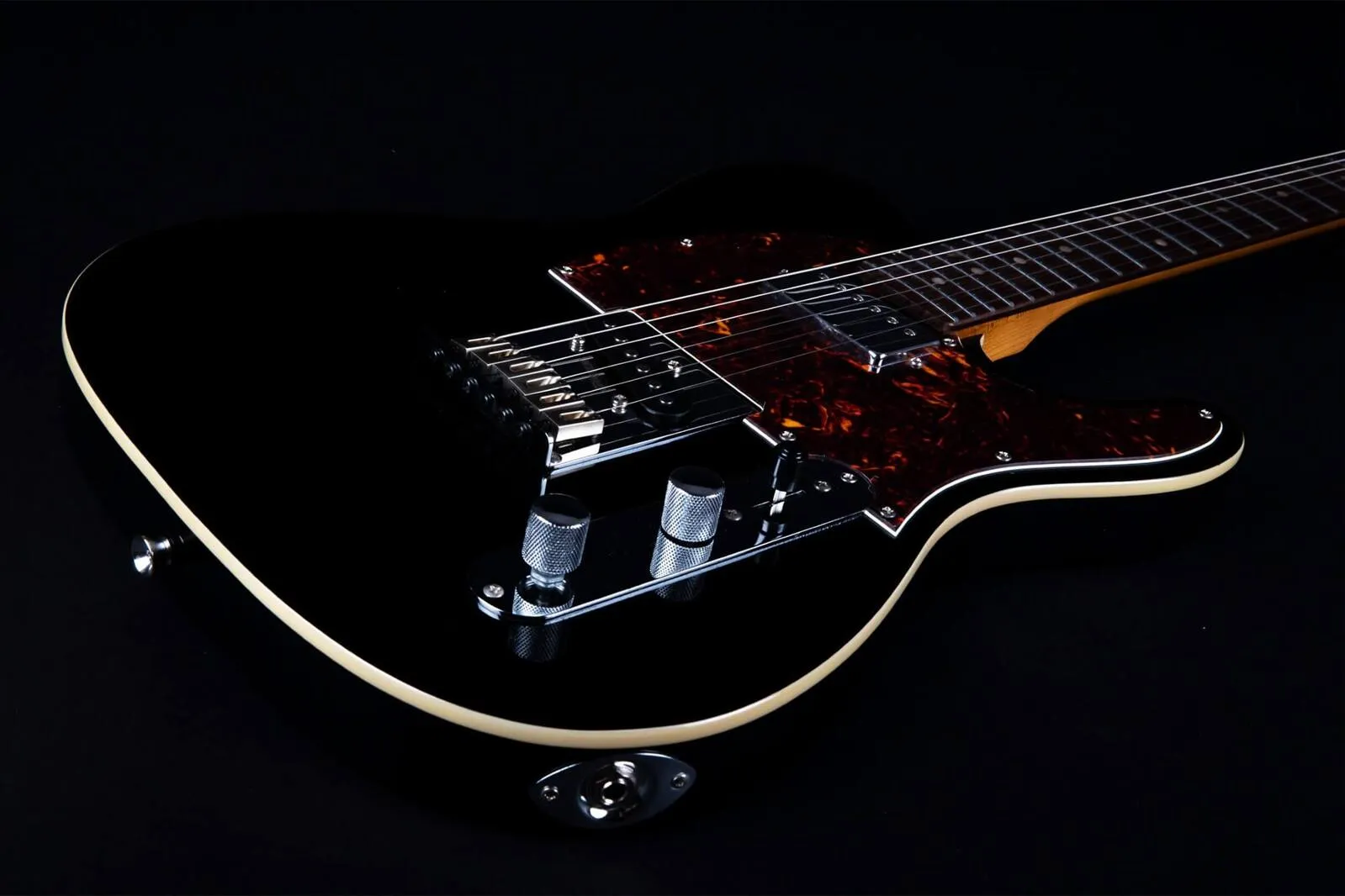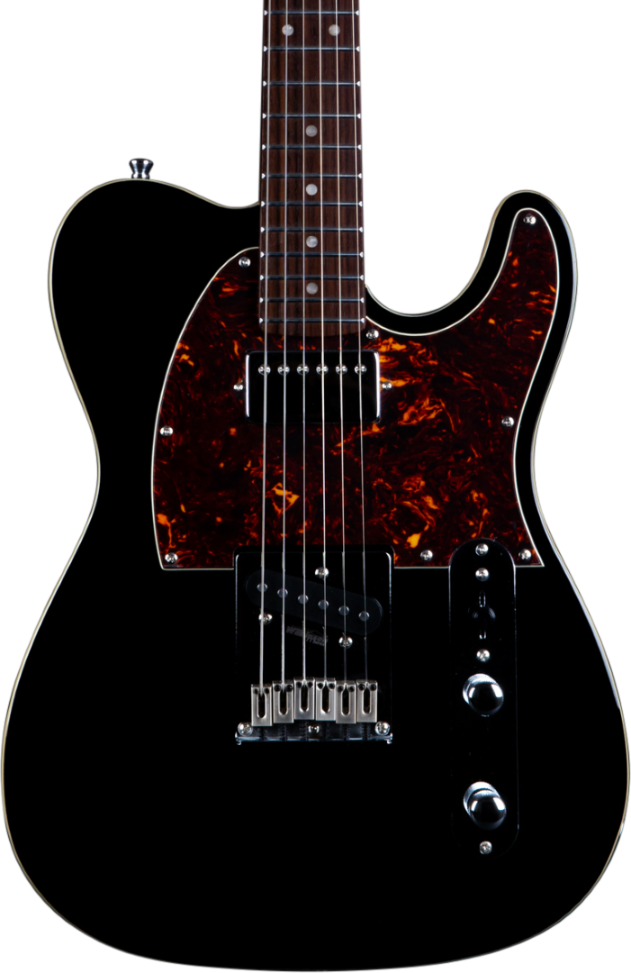 The JET Guitars JT-350 Electric Guitar RW, finished in Black, features a coil-splitting alnico humbucker, and an alnico single-coil for everything from classic Tele twang, to gained-up dirty riffs. Premium features not usually found in guitars this affordable, like a Modern C-Profile Canadian Maple neck and Rosewood fingerboard, make for hours of easy and comfortable playability. Locking tuners, a bone nut, and a Wilkinson fixed bridge ensure solid tuning stability.