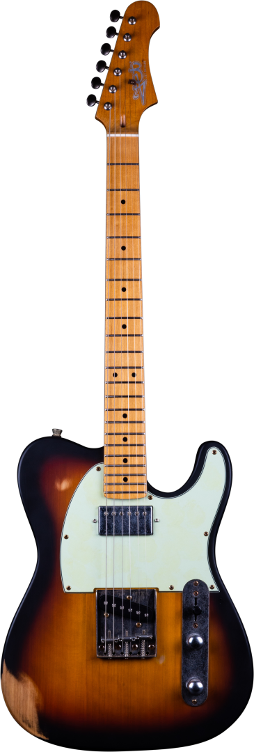 The JET Guitars JT-350 Relic Electric Guitar MN, finished in Sunburst, features an alnico single-coil for classic Tele twang, combined with a coil-split alnico humbucker, for everything from glassy cleans to modern gained up tones. Premium features not usually found in guitars this affordable, like a Modern C-Profile Canadian Maple neck and fingerboard, make for hours of easy and comfortable playability. A relic finish and aged hardware gives this guitar the look of a played-in vintage instrument, and makes a nice feature of the tonewood's grain.