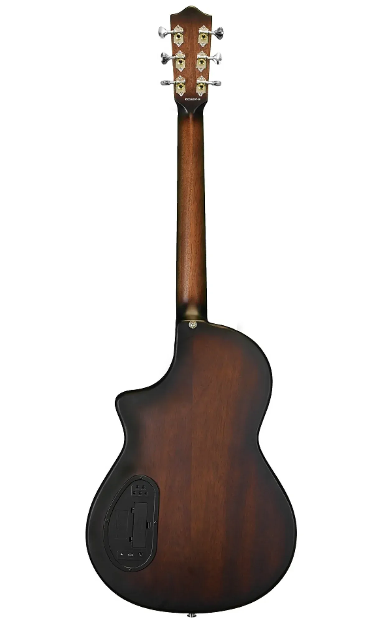 Like its nylon stringed cousin, The Hispania Folk Steel features Katoh’s SG1 Digital Smart electronics, with reverb, delay, and EQ that works seamlessly with piezo transducer and on-board microphone, elevating this instrument to a whole new level. It comes equipped with rechargeable battery compartment, USB-C connectivity for recording, and headphone jack for monitoring during practice. Includes a sturdy gig bag to complete the package.